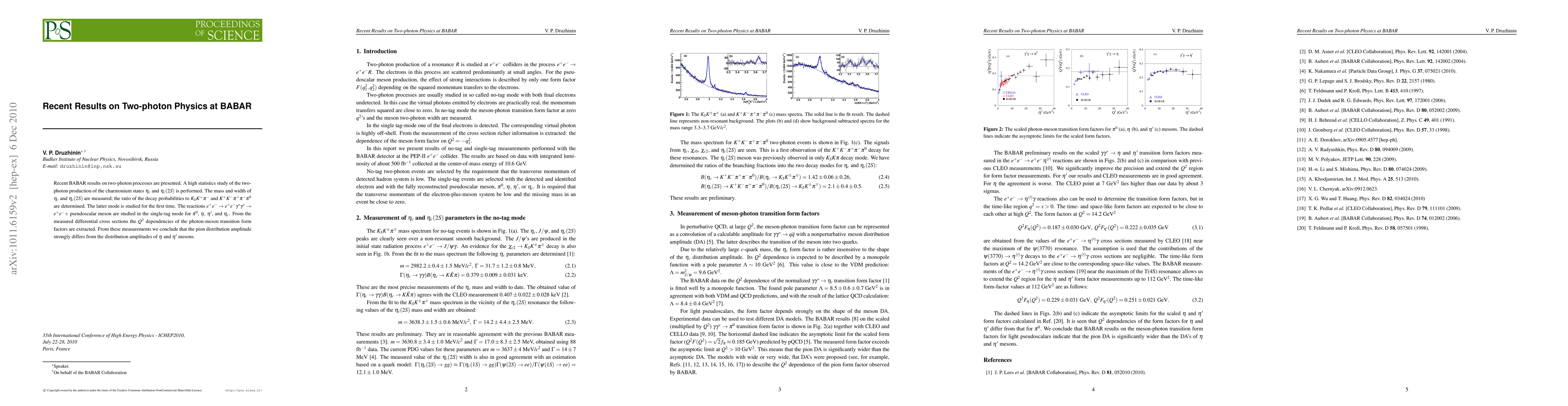 Recent BABAR results on two-photon processes are presented. A high statistics study of the two-photon production of the charmonium states eta_c and eta_c(2S) is performed. The mass and width of eta_c and eta_c(2S) are measured; the ratio of the decay probabilities to KS K+pi- and K+K-pi+pi-pi0 are determined. The latter mode is studied for the first time. The reactions e+e- --> e+e- gamma* gamma* --> e+e- + pseudoscalar meson are studied in the single-tag mode for pi0, eta, eta', and eta_c. From the measured differential cross sections the Q^2 dependencies of the photon-meson transition form factors are extracted. From these measurements we conclude that the pion distribution amplitude strongly differs from the distribution amplitudes of eta and eta' mesons.