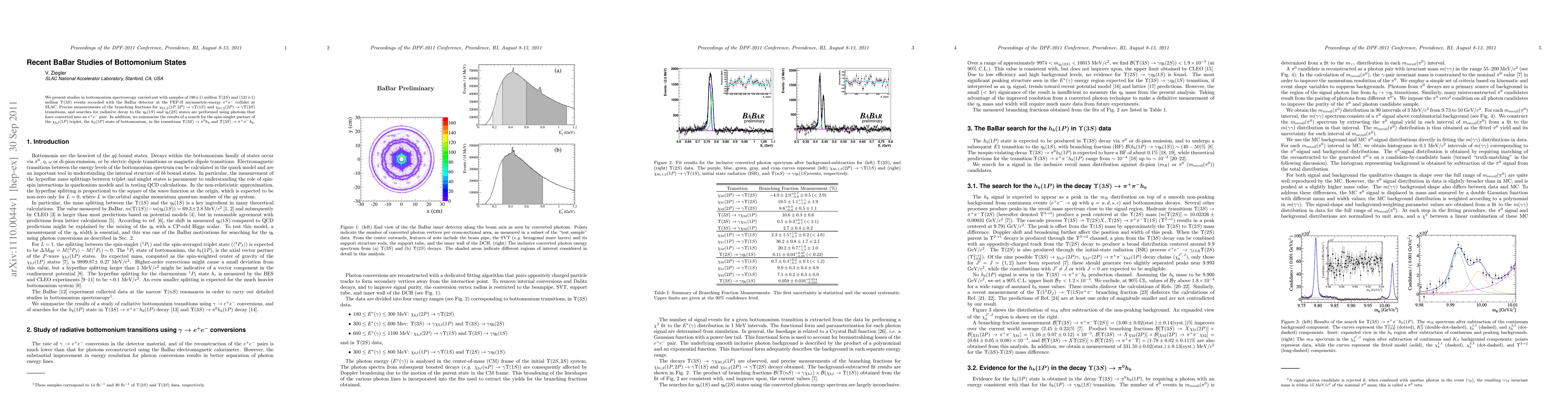 We present studies in bottomonium spectroscopy carried out with samples of $(98\pm1)$ million $\Upsilon(2S)$ and $(121\pm1)$ million $\Upsilon(3S)$ events recorded with the BaBar detector at the PEP-II asymmetric-energy $e^+ e^-$ collider at SLAC. Precise measurements of the branching fractions for $\chi_{b1,2}(1P, 2P)\rightarrow \gamma \Upsilon(1S)$ and $\chi_{b1,2}(2P)\rightarrow \gamma \Upsilon(2S)$ transitions, and searches for radiative decay to the $\eta_b(1S)$ and $\eta_b(2S)$ states are performed using photons that have converted into an $e^+ e^-$ pair. In addition, we summarize the results of a search for the spin-singlet partner of the $\chi_{bJ}(1P)$ triplet, the $h_b(1P)$ state of bottomonium, in the transitions $\Upsilon(3S)\rightarrow \pi^0 h_b$ and $\Upsilon(3S)\rightarrow \pi^+\pi^- h_b$.