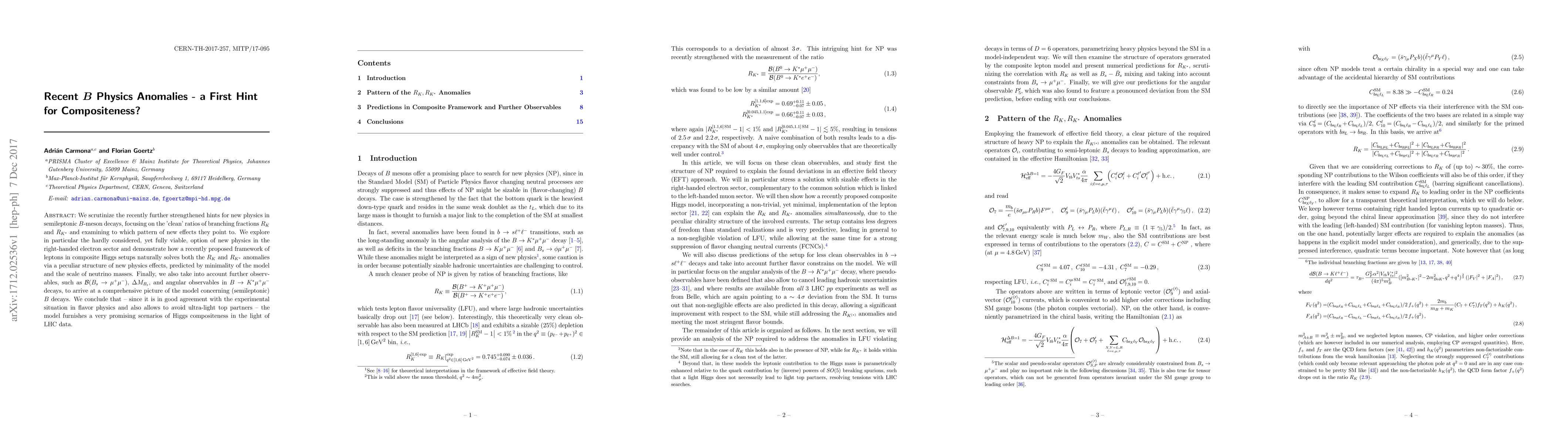 A new physics framework explains recent anomalies in B-meson decays through composite Higgs setups, providing a promising scenario for Higgs compositeness with good agreement with experimental data.