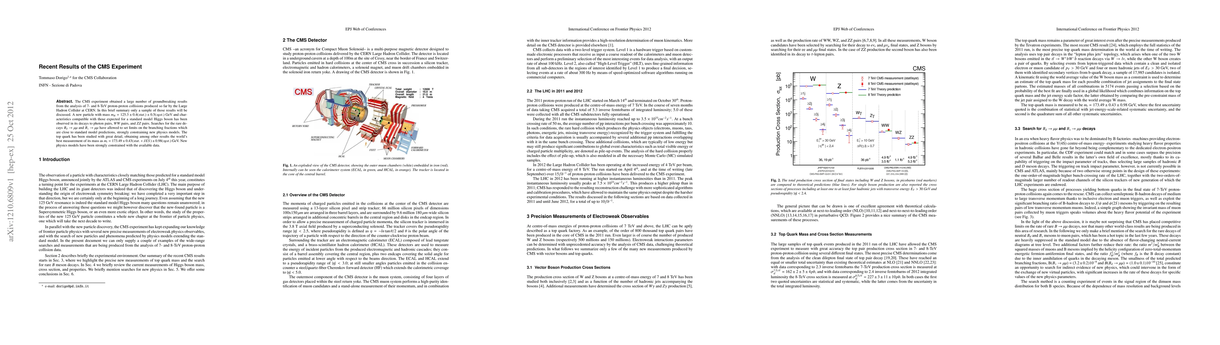 The CMS experiment has confirmed the existence of a Higgs boson with mass 125.3 GeV and constrained rare decays, while also refining measurements of the top quark's mass.
