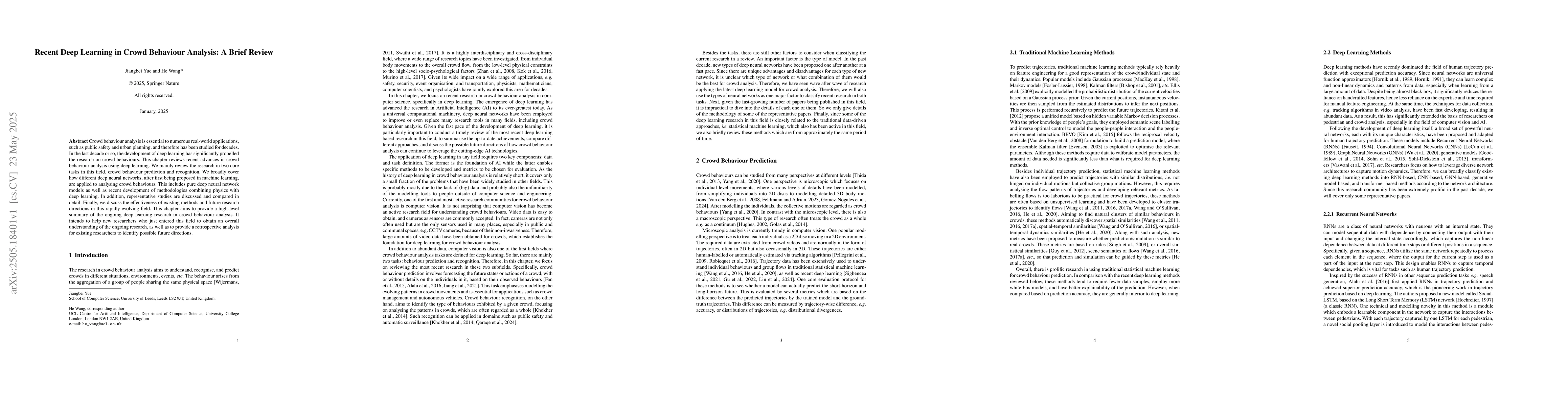 Recent deep learning advancements in crowd behavior analysis have improved prediction and recognition capabilities for applications like public safety and urban planning. A review of key research highlights the effectiveness of various methodologies and identifies future directions for this rapidly evolving field.