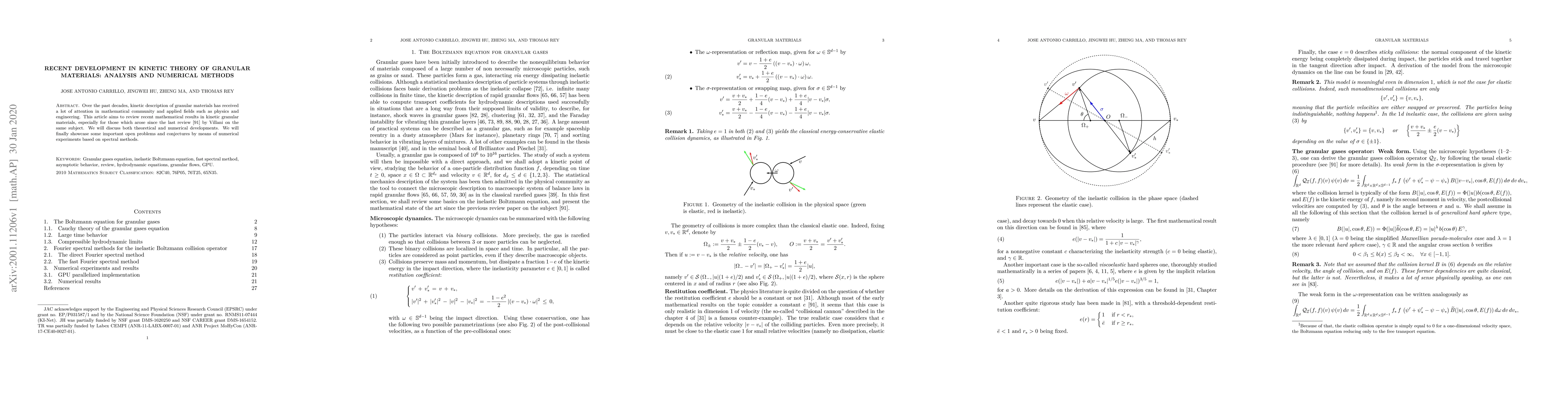 Recent research in kinetic theory of granular materials has led to new mathematical results and numerical methods for analyzing their behavior. These advancements aim to solve open problems and conjectures in the field, shedding light on the dynamics of these complex systems.