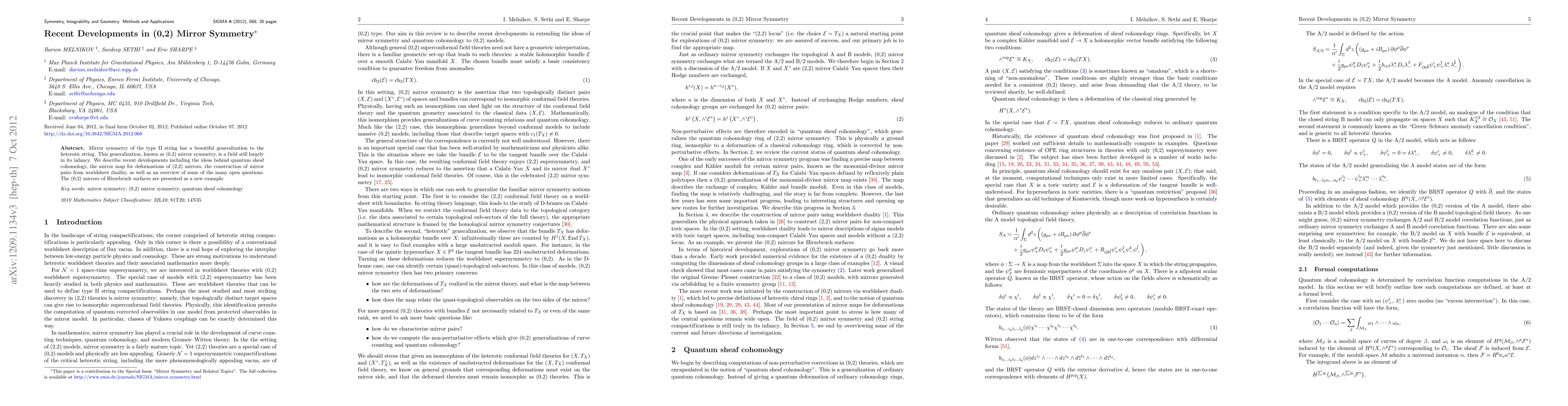 Mirror symmetry of the type II string has a beautiful generalization to the heterotic string. This generalization, known as (0,2) mirror symmetry, is a field still largely in its infancy. We describe recent developments including the ideas behind quantum sheaf cohomology, the mirror map for deformations of (2,2) mirrors, the construction of mirror pairs from worldsheet duality, as well as an overview of some of the many open questions. The (0,2) mirrors of Hirzebruch surfaces are presented as a new example.
