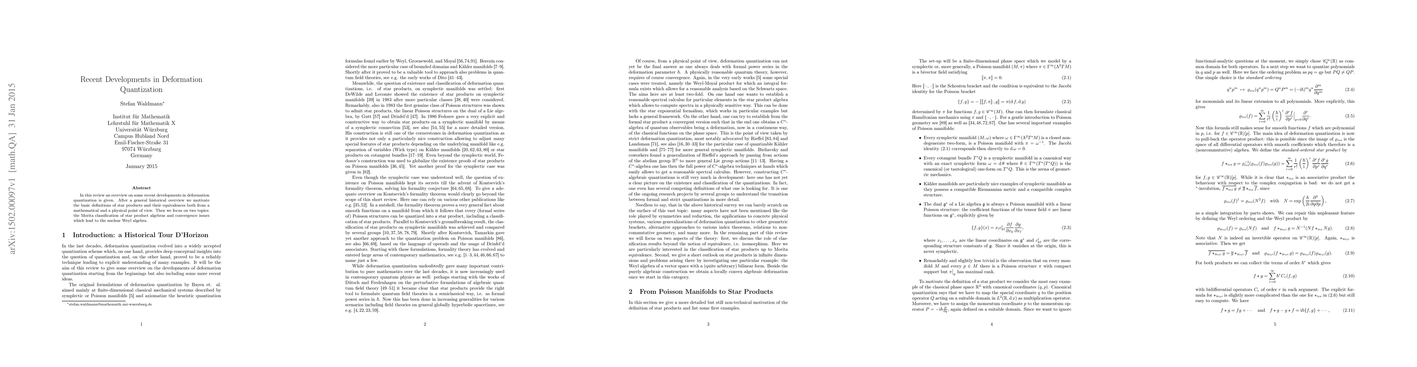 This paper reviews recent advancements in deformation quantization, focusing on star products and their equivalences, as well as exploring the Morita classification of star product algebras and convergence issues leading to the nuclear Weyl algebra.