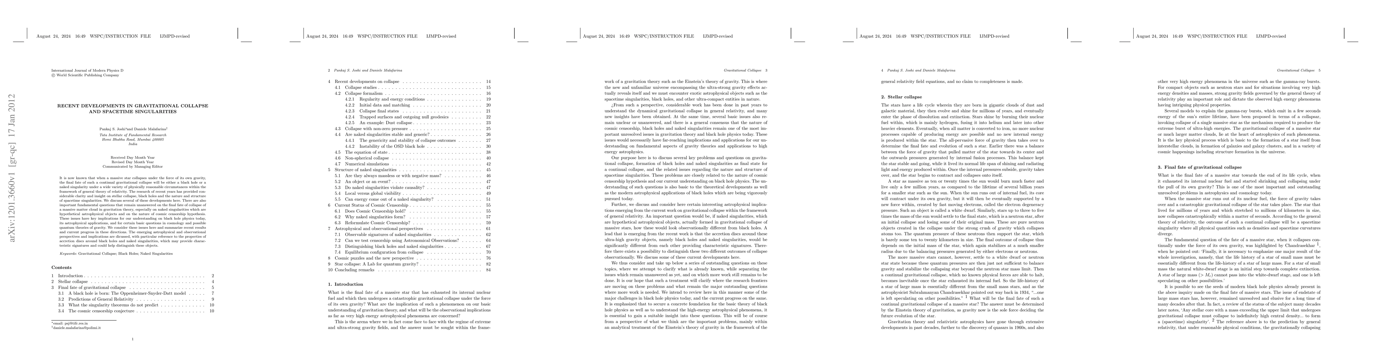 It is now known that when a massive star collapses under the force of its own gravity, the final fate of such a continual gravitational collapse will be either a black hole or a naked singularity under a wide variety of physically reasonable circumstances within the framework of general theory of relativity. The research of recent years has provided considerable clarity and insight on stellar collapse, black holes and the nature and structure of spacetime singularities. We discuss several of these developments here. There are also important fundamental questions that remain unanswered on the final fate of collapse of a massive matter cloud in gravitation theory, especially on naked singularities which are hypothetical astrophysical objects and on the nature of cosmic censorship hypothesis. These issues have key implications for our understanding on black hole physics today, its astrophysical applications, and for certain basic questions in cosmology and possible quantum theories of gravity. We consider these issues here and summarize recent results and current progress in these directions. The emerging astrophysical and observational perspectives and implications are dicussed, with particular reference to the properties of accretion discs around black holes and naked singularities, which may provide characteristic signatures and could help distinguish these objects.