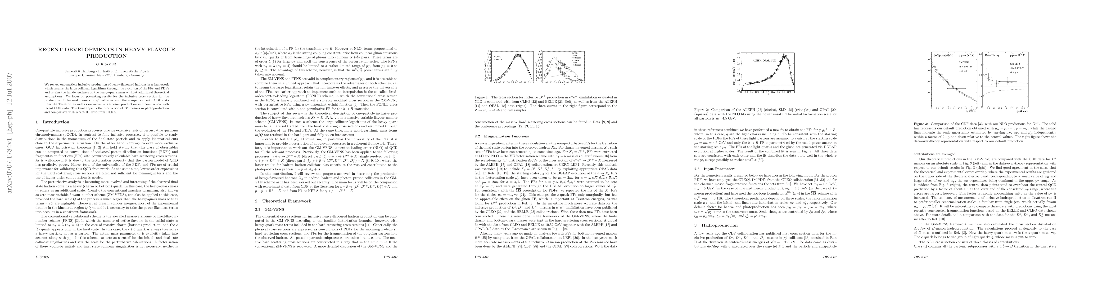 We review one-particle inclusive production of heavy-flavoured hadrons in a framework which resums the large collinear logarithms through the evolution of the FFs and PDFs and retains the full dependence on the heavy-quark mass without additional theoretical assumptions. We focus on presenting results for the inclusive cross section for the production of charmed mesons in p anti-p collisions and the comparison with CDF data from the Tevatron as well as on inclusive B-meson production and comparison with recent CDF data. The third topic is the production of D^* mesons in photoproduction and comparison with recent H1 data from HERA.