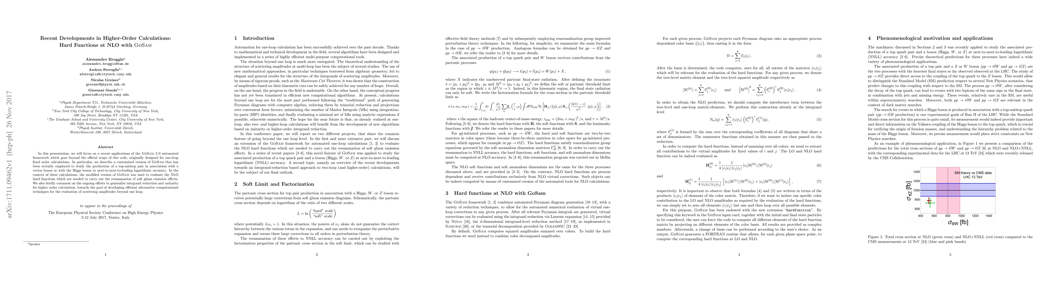 In this presentation, we will focus on a recent applications of the GoSam 2.0 automated framework which goes beyond the official scope of this code, originally designed for one-loop fixed order calculations. In particular, we describe a customized version of GoSam that has been recently employed to study the production of a top-antitop pair in association with a vector boson or with the Higgs boson to next-to-next-to-leading logarithmic accuracy. In the context of these calculations, the modified version of GoSam was used to evaluate the NLO hard functions which are needed to carry out the resummation of soft gluon emission effects. We also briefly comment on the ongoing efforts to generalize integrand reduction and unitarity for higher order calculation, towards the goal of developing efficient alternative computational techniques for the evaluation of scattering amplitudes beyond one loop.