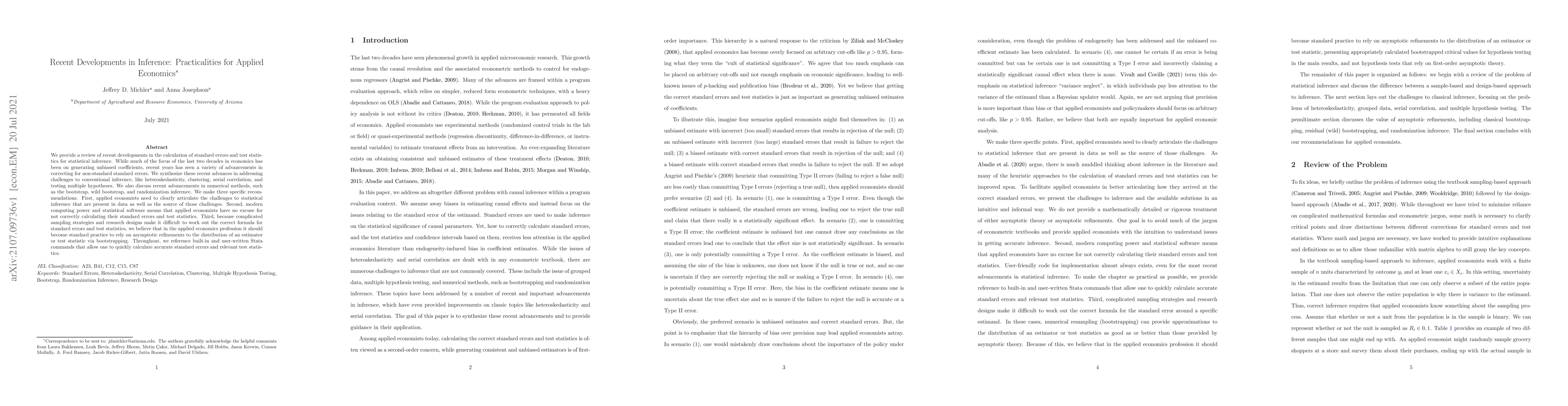 This paper reviews recent advancements in statistical inference methods, emphasizing the correction of non-standard standard errors to address issues like heteroskedasticity and clustering. It recommends that applied economists articulate data challenges, correctly calculate standard errors, and utilize bootstrapping for complex sampling designs.
