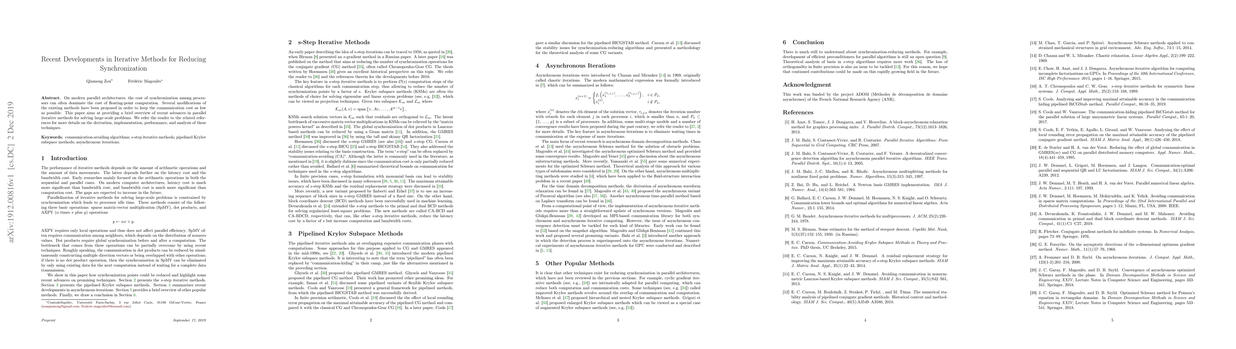 Recent advances in parallel iterative methods aim to reduce synchronization costs on modern parallel architectures, improving performance for large-scale problems. This paper provides a brief overview of key techniques and references for further details.