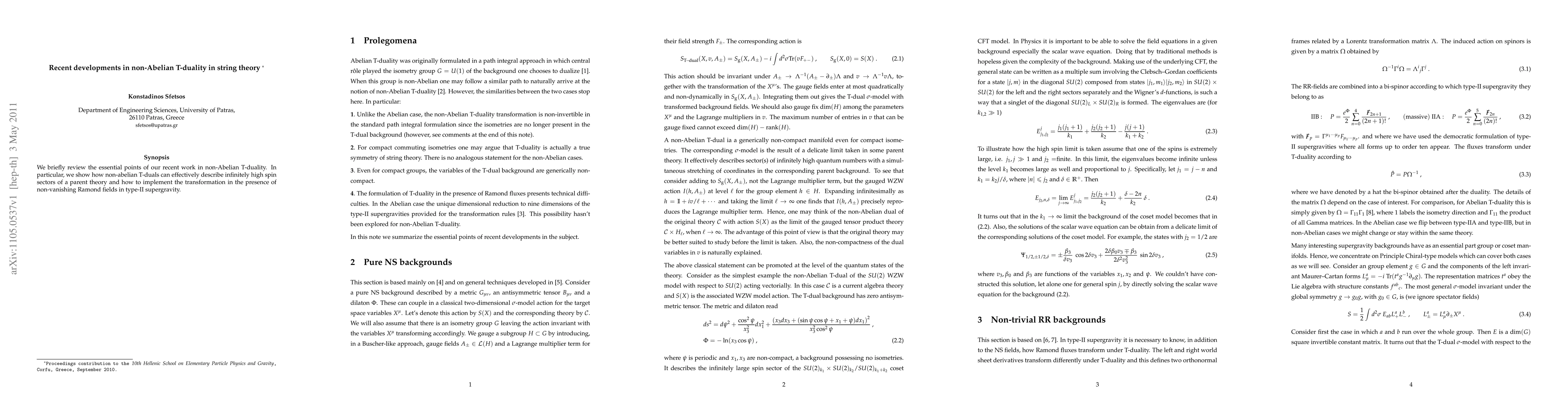 This paper reviews recent advancements in non-Abelian T-duality, demonstrating its application in describing high spin sectors and presenting a method for its implementation in type-II supergravity with non-zero Ramond fields.