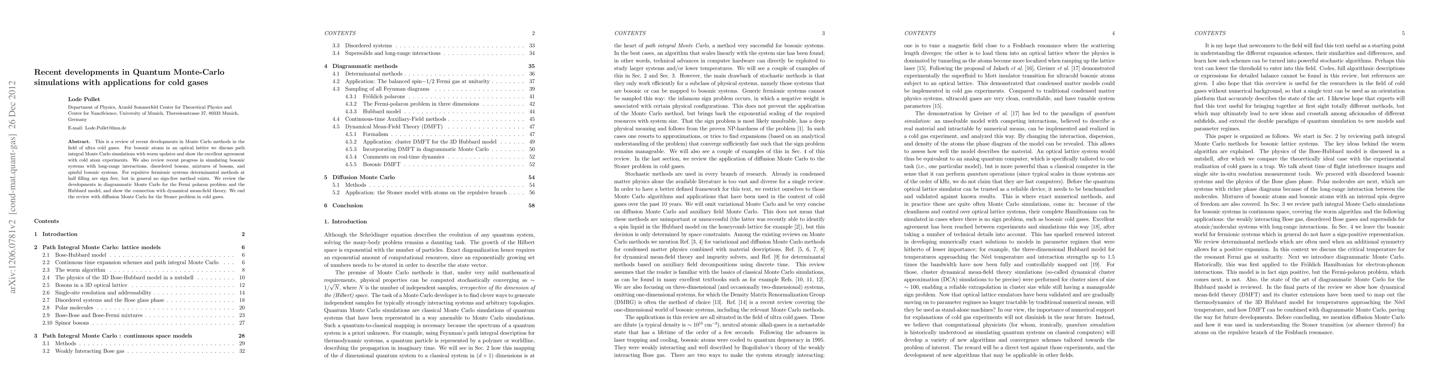 This paper reviews recent advancements in Quantum Monte Carlo simulations applied to ultra-cold gases, highlighting path integral methods for bosonic atoms and developments in fermionic systems, including the Fermi polaron and Hubbard model, with a focus on sign-free techniques and connections to dynamical mean-field theory.