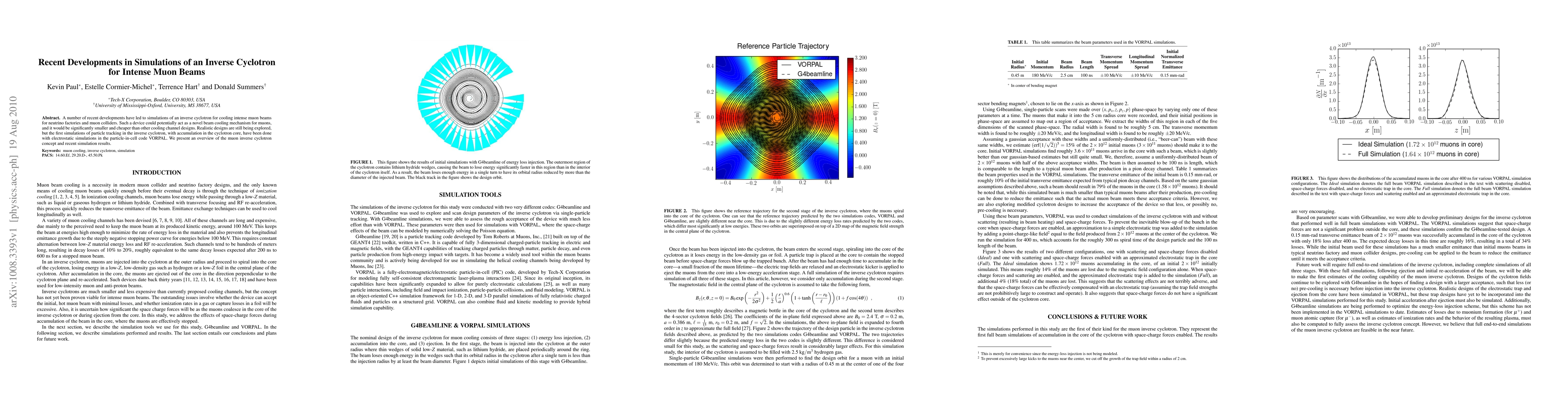 Recent simulations using the VORPAL code have explored an inverse cyclotron for cooling intense muon beams, potentially offering a smaller and cheaper alternative to existing cooling methods for neutrino factories and muon colliders. Initial particle-tracking simulations show promising results for accumulation in the cyclotron core.