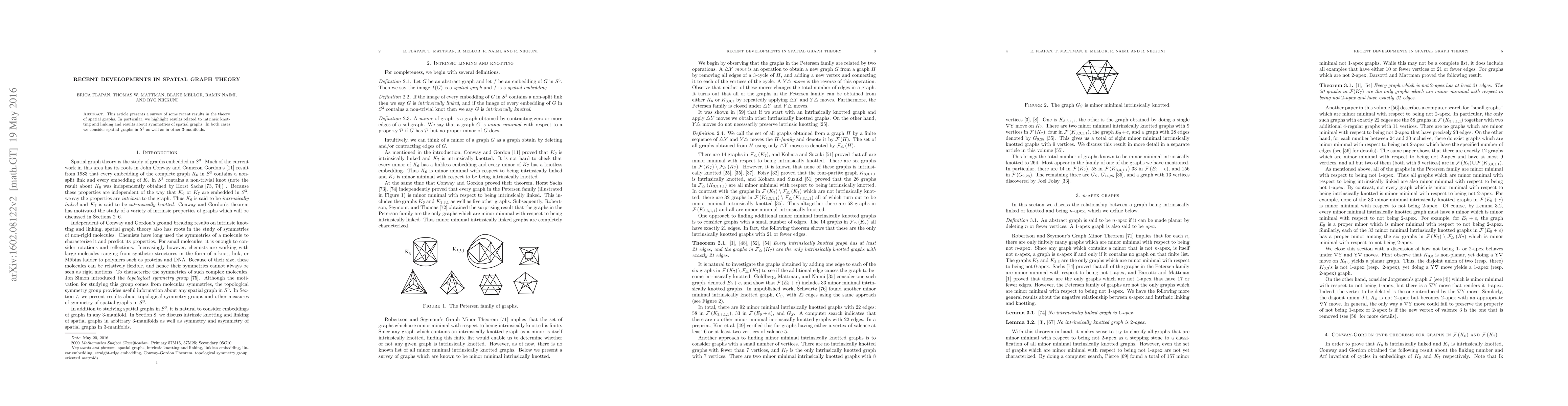 This paper surveys recent developments in spatial graph theory, focusing on intrinsic knotting and linking in 3-manifolds and symmetries of spatial graphs.