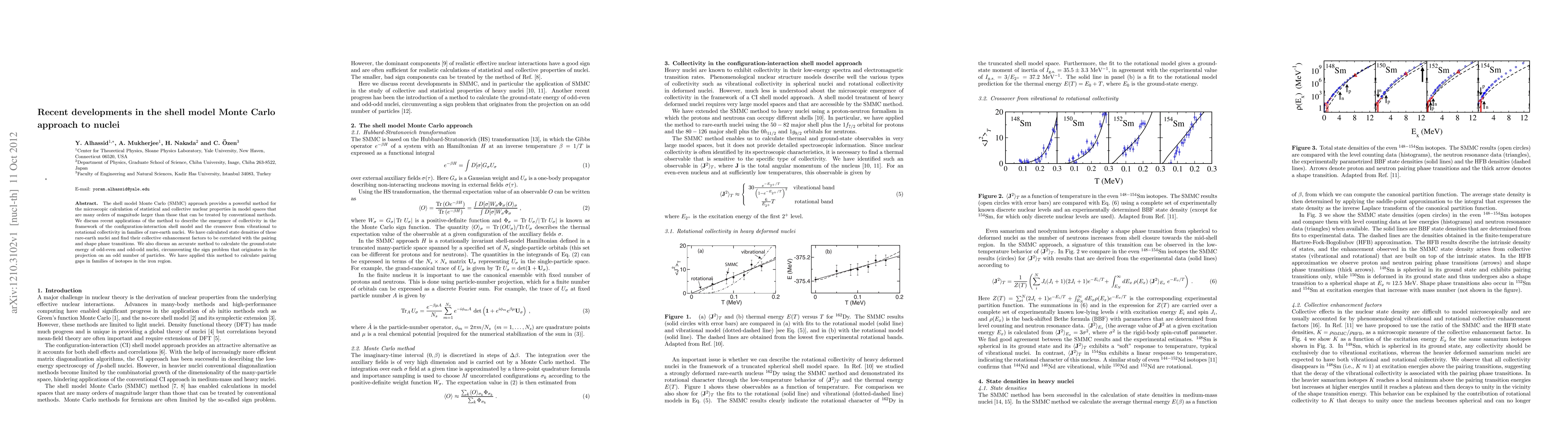 The shell model Monte Carlo (SMMC) approach provides a powerful method for the microscopic calculation of statistical and collective nuclear properties in model spaces that are many orders of magnitude larger than those that can be treated by conventional methods. We discuss recent applications of the method to describe the emergence of collectivity in the framework of the configuration-interaction shell model and the crossover from vibrational to rotational collectivity in families of rare-earth nuclei. We have calculated state densities of these rare-earth nuclei and find their collective enhancement factors to be correlated with the pairing and shape phase transitions. We also discuss an accurate method to calculate the ground-state energy of odd-even and odd-odd nuclei, circumventing the sign problem that originates in the projection on an odd number of particles. We have applied this method to calculate pairing gaps in families of isotopes in the iron region.
