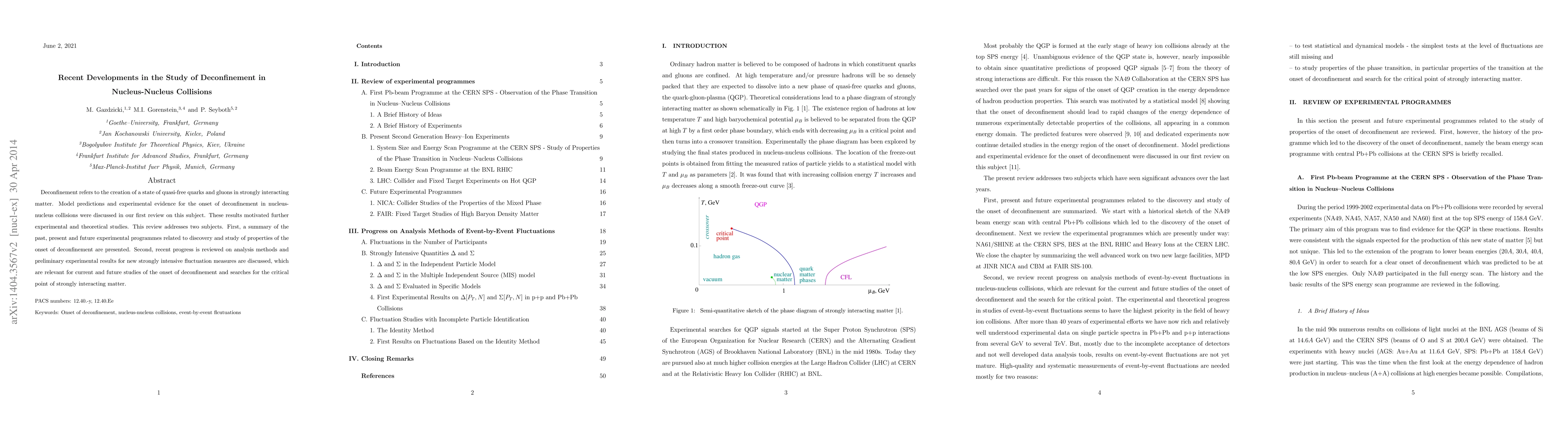 Deconfinement refers to the creation of a state of quasi-free quarks and gluons in strongly interacting matter. Model predictions and experimental evidence for the onset of deconfinement in nucleus-nucleus collisions were discussed in our first review on this subject. These results motivated further experimental and theoretical studies. This review addresses two subjects. First, a summary of the past, present and future experimental programmes related to discovery and study of properties of the onset of deconfinement are %briefly presented. Second, recent progress is reviewed on analysis methods and preliminary experimental results for new strongly intensive fluctuation measures are discussed, which are relevant for current and future studies of the onset of deconfinement and searches for the critical point of strongly interacting matter