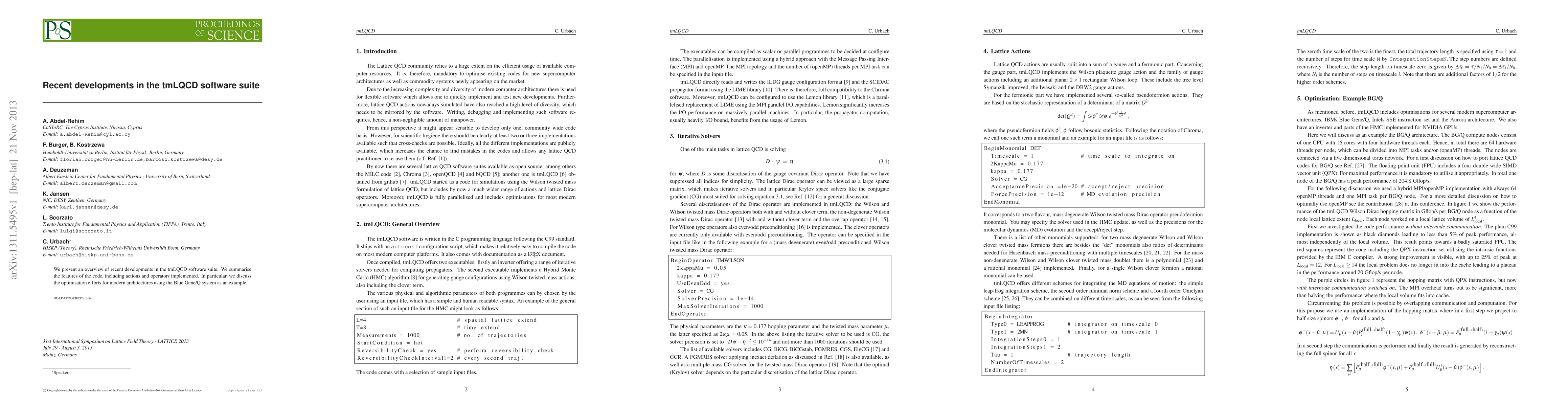 This paper provides an overview of recent enhancements to the tmLQCD software suite, highlighting new features and optimizations for modern architectures, particularly focusing on performance improvements using the Blue Gene/Q system.