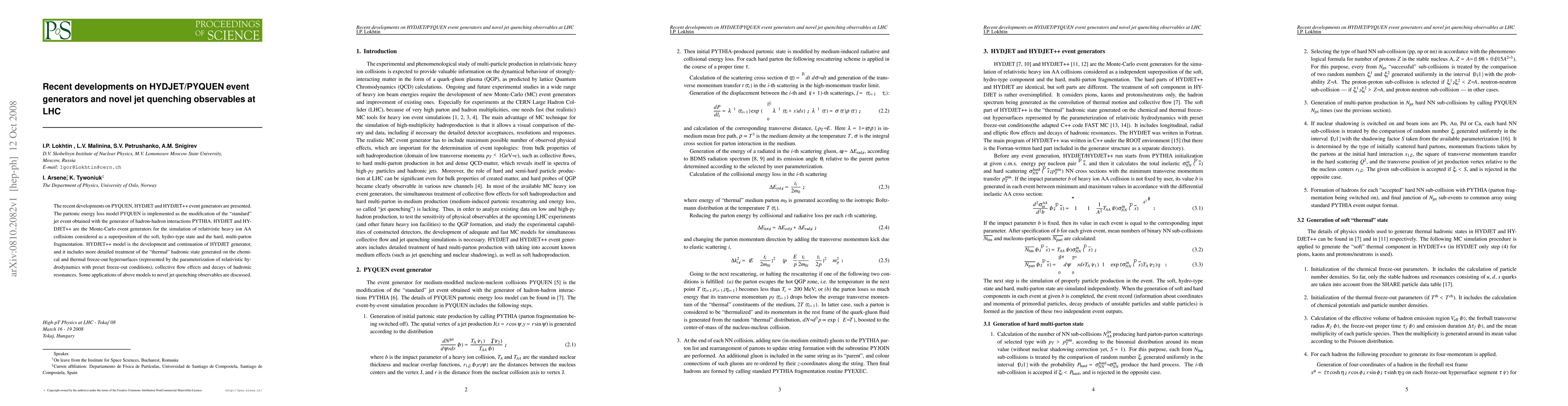 Researchers present recent updates to event generators HYDJET/PYQUEN for heavy ion collisions, including new jet quenching observables, and discuss their applications in understanding relativistic heavy ion physics.