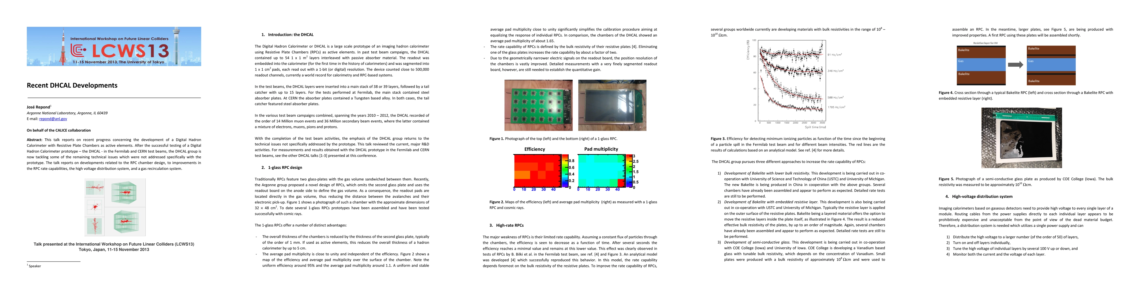 This paper discusses recent advancements in the Digital Hadron Calorimeter (DHCAL) project, focusing on improvements in resistive plate chamber design, enhanced rate capabilities, high voltage distribution, and a gas recirculation system following successful prototype tests at Fermilab and CERN.
