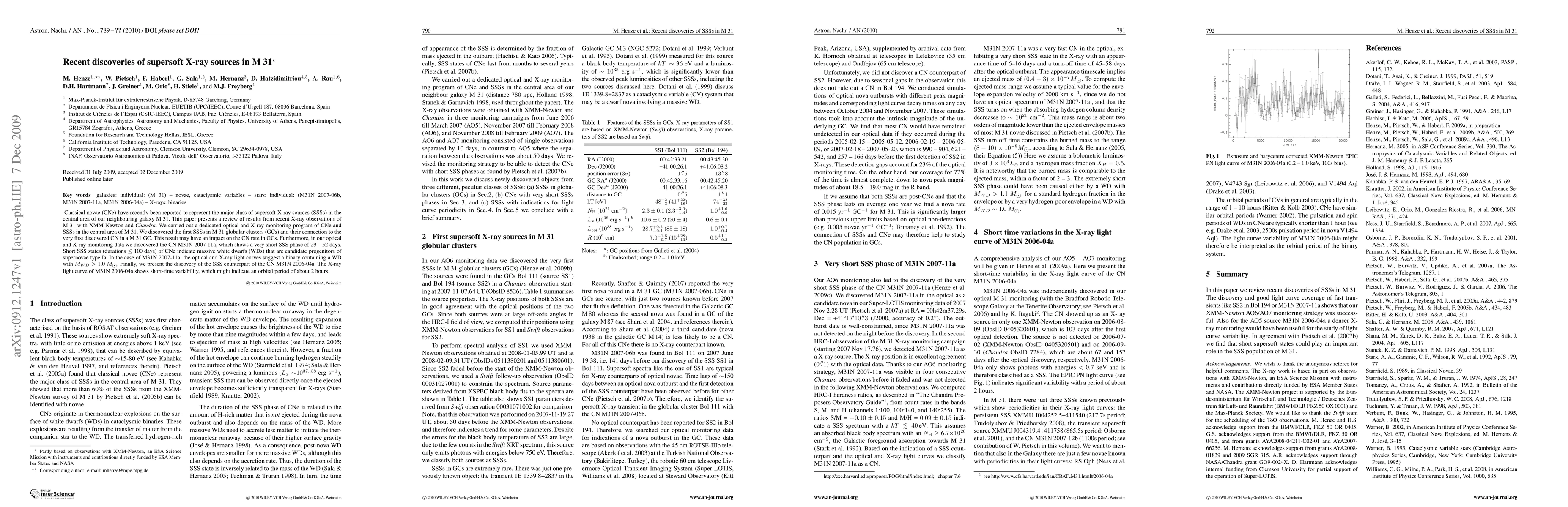 This paper reviews recent X-ray observations of M 31, identifying classical novae as the major class of supersoft X-ray sources. It reports the first detection of supersoft X-ray sources in M 31 globular clusters, suggesting a potential impact on nova rates in these clusters.