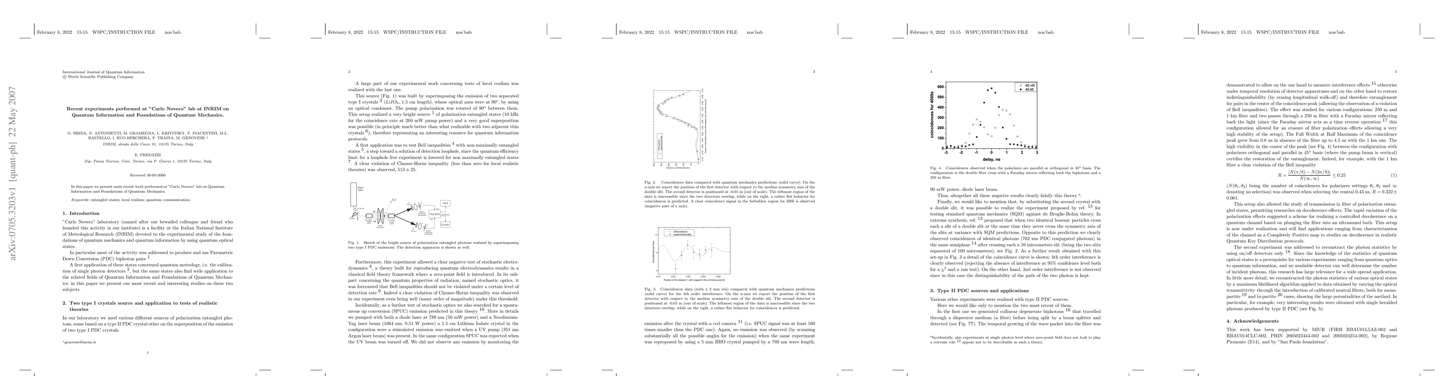 Summary: This paper reports on recent experimental findings from the "Carlo Novero" lab at INRIM concerning advancements in Quantum Information and the foundational principles of Quantum Mechanics. The experiments aim to deepen the understanding of quantum phenomena and their implications.