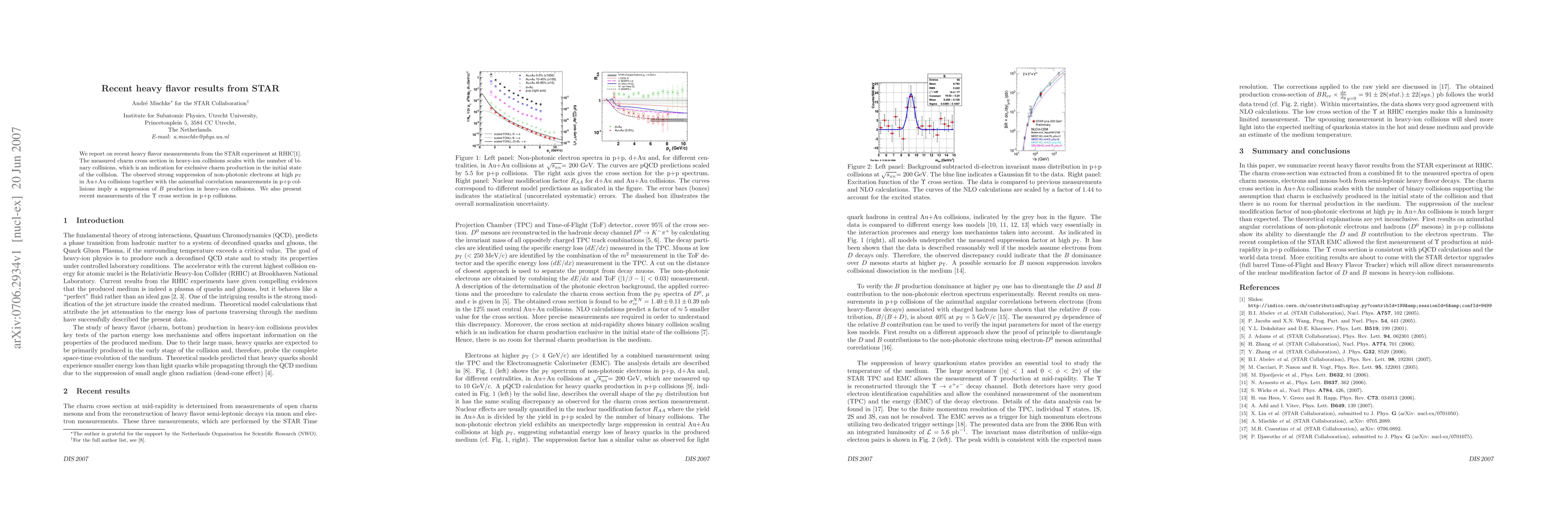 This paper reports on recent heavy flavor measurements from STAR at RHIC, showing that charm cross section scales with binary collisions, indicating initial state charm production. It also observes strong suppression of non-photonic electrons and $B$ meson production in heavy-ion collisions, alongside new measurements of the $\Upsilon$ cross section in p+p collisions.