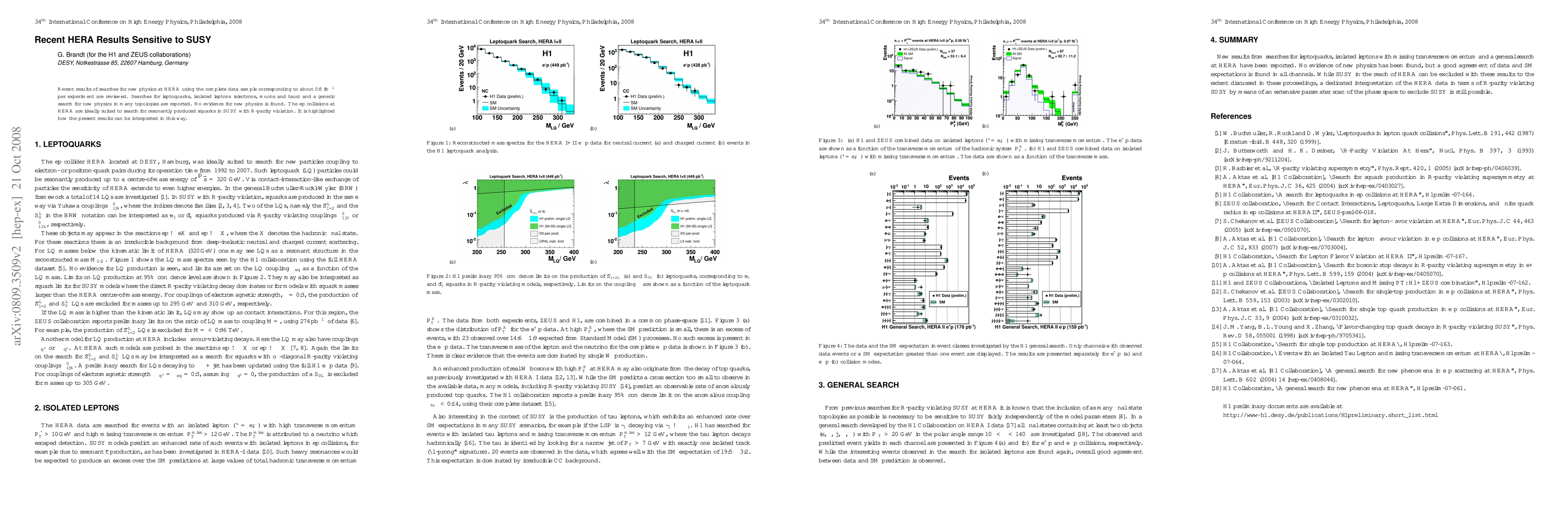 This paper reviews recent HERA results from searches for new physics, including leptoquarks and isolated leptons, using a complete data sample of about 0.5/fb. Despite the thorough investigation, no evidence for new physics was found, but the results are still informative for SUSY searches with R-parity violation.