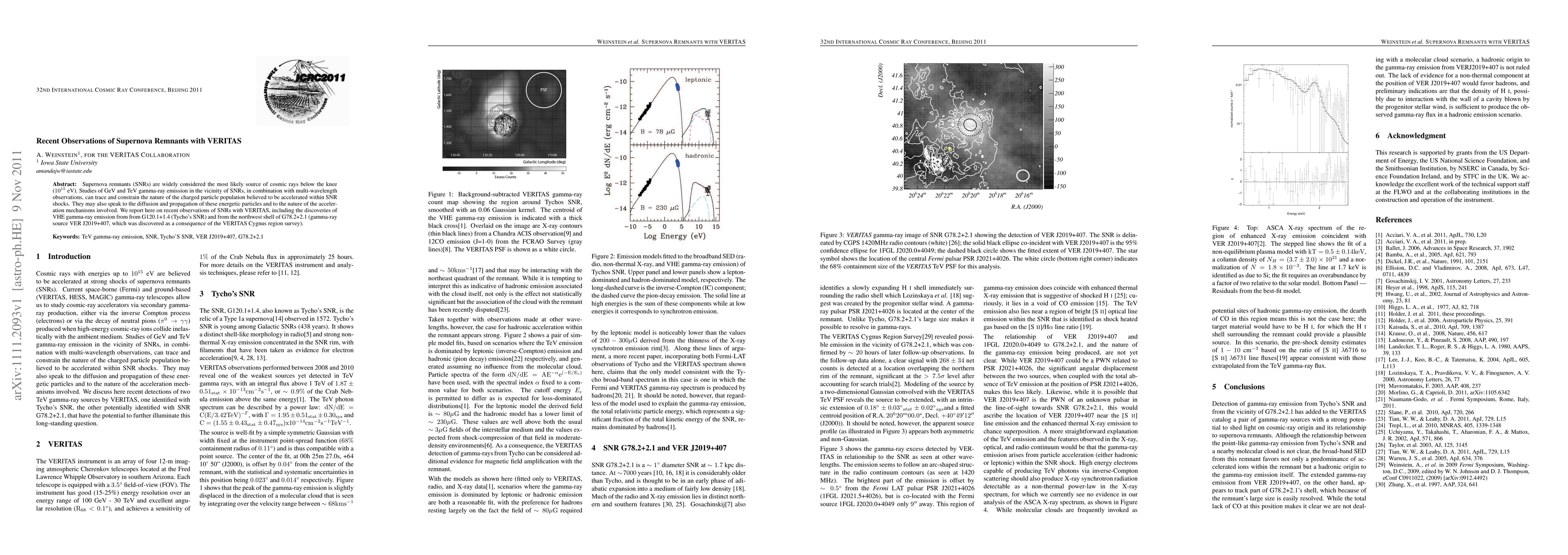 This paper reports recent observations of supernova remnants (SNRs) using the VERITAS telescope, revealing very high-energy (VHE) gamma-ray emissions from Tycho's SNR (G120.1+1.4) and the northwest shell of G78.2+2.1 (VER J2019+407). These findings contribute to understanding the acceleration mechanisms and the nature of cosmic rays below the knee.