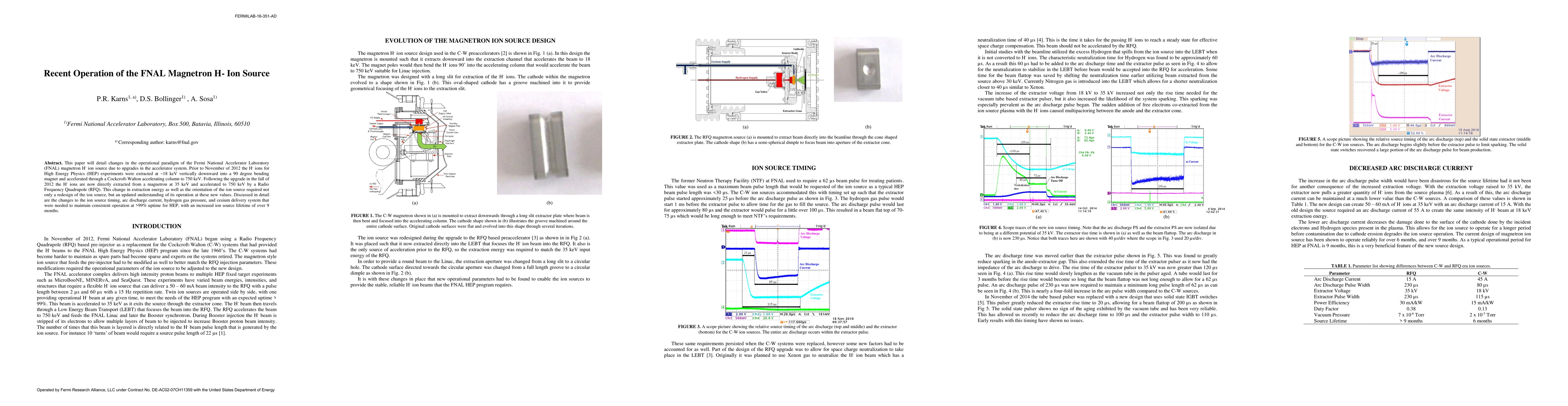 This paper details the operational changes of the FNAL magnetron $H^{-}$ ion source following upgrades in the accelerator system, including a shift from 18 keV to 35 keV extraction energy and the use of an RFQ for acceleration. The redesign improved uptime and source lifetime while maintaining consistent performance for High Energy Physics experiments.