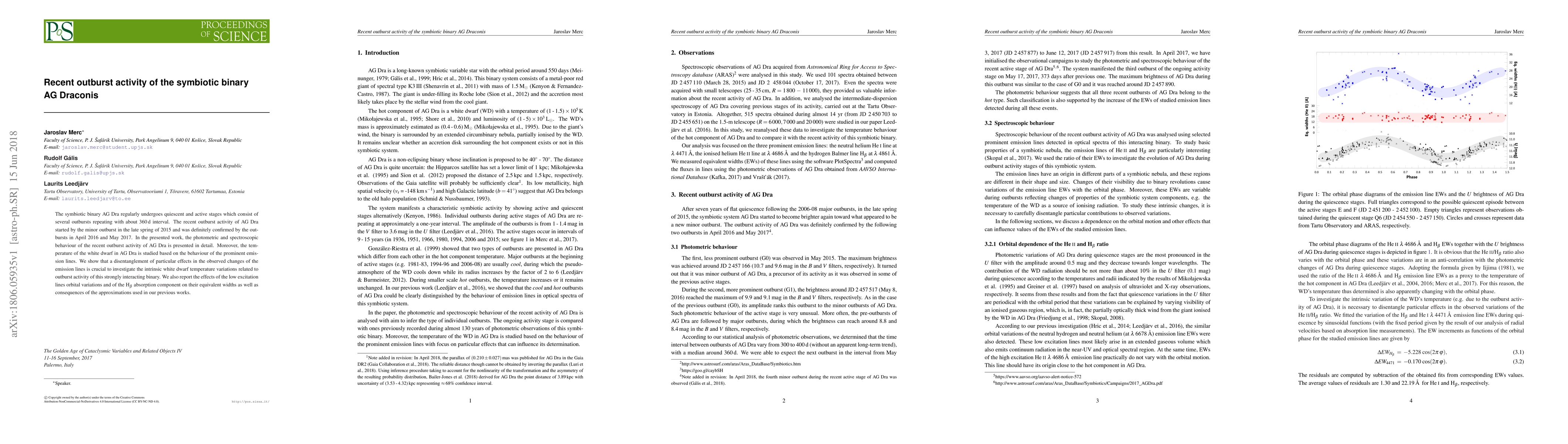 The AG Dra binary undergoes recurring outbursts with a 360d interval, and this paper analyzes the photometric and spectroscopic behavior of recent outburst activity, revealing crucial disentanglements to study white dwarf temperature variations.