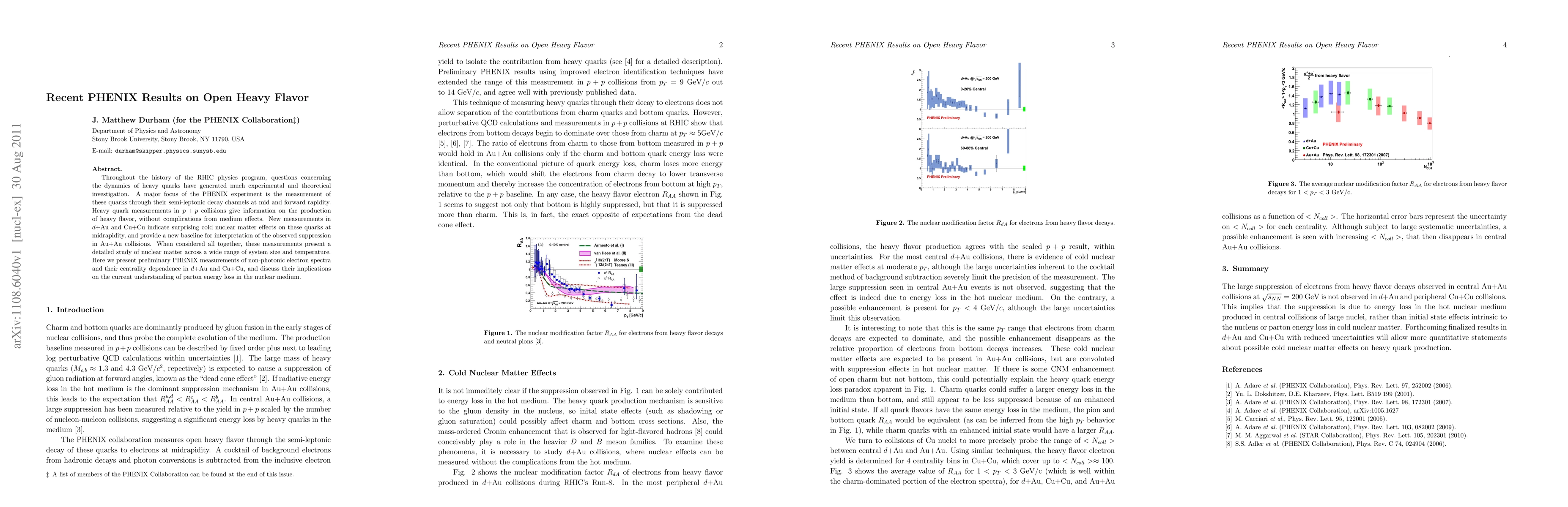 The PHENIX experiment measures open heavy flavor through semi-leptonic decay channels, revealing surprising cold nuclear matter effects in $d+$Au and Cu+Cu collisions. These findings provide new insights into parton energy loss and the dynamics of heavy quarks in different nuclear environments.
