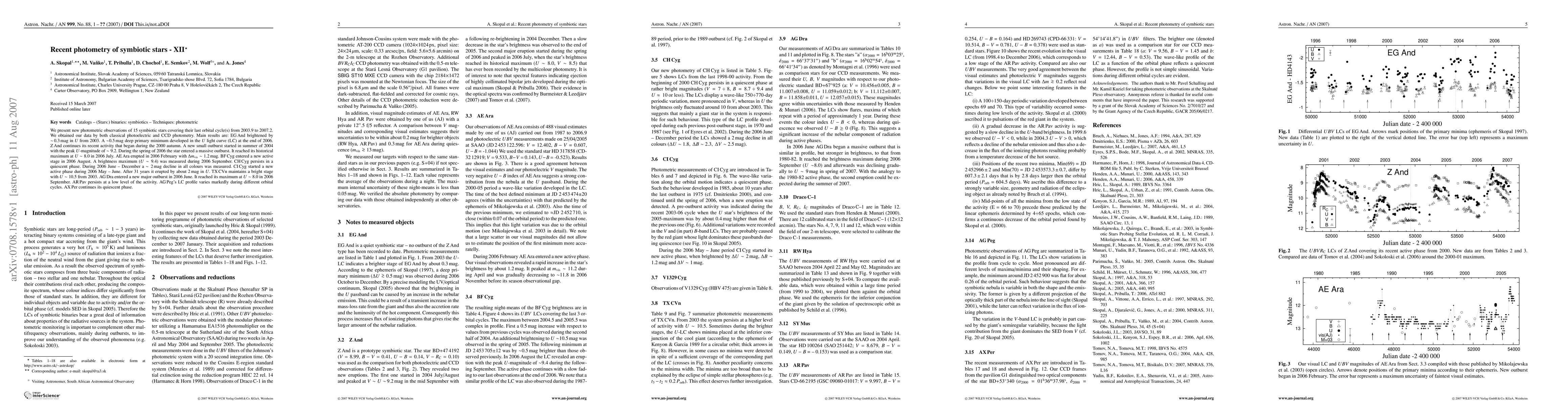This paper reports new photometric observations of 15 symbiotic stars from 2003 to 2007, revealing significant brightness changes and outbursts, including notable eruptions in EG And, Z And, AE Ara, BF Cyg, and AG Dra. Some stars, like CH Cyg, showed a decline in brightness, while others maintained stable activity.