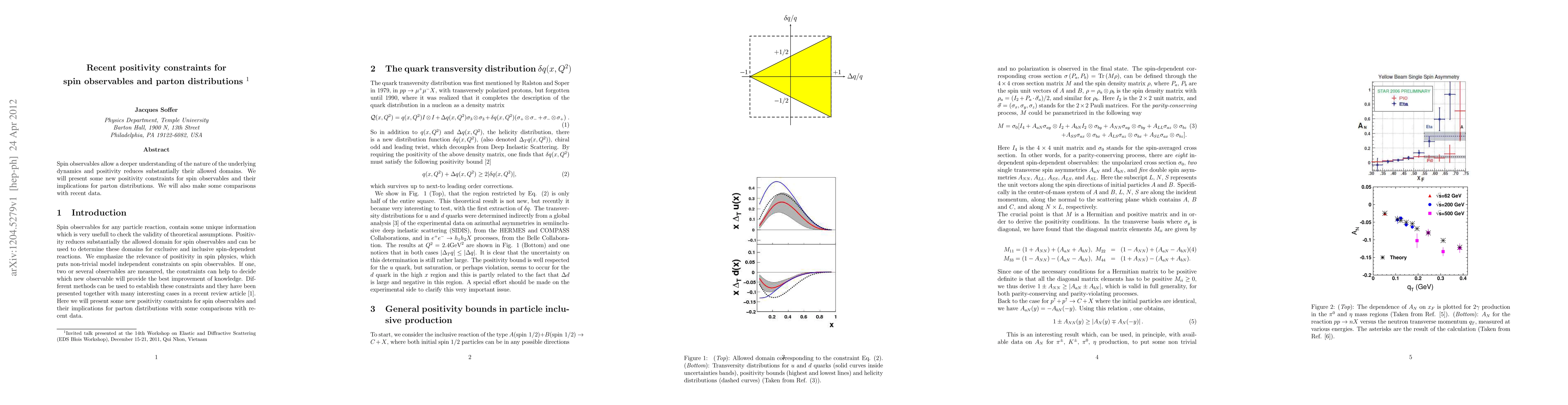 This paper introduces new positivity constraints for spin observables, which significantly limit their possible values, and discusses their implications for parton distributions. It also compares these constraints with recent experimental data.