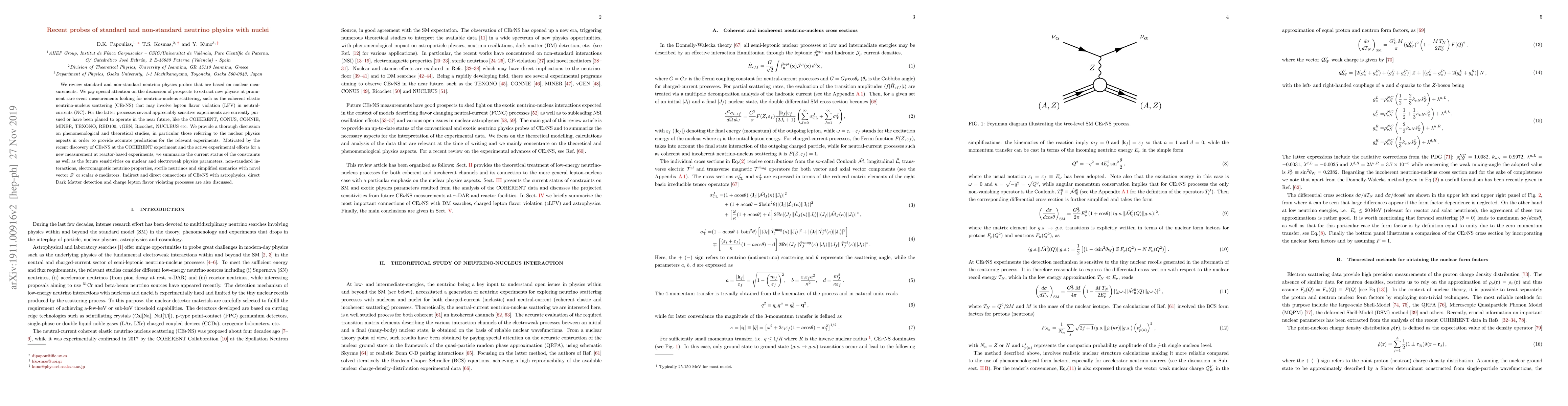 We review standard and non-standard neutrino physics probes that are based on nuclear measurements. We pay special attention on the discussion of prospects to extract new physics at prominent rare event measurements looking for neutrino-nucleus scattering, such as the coherent elastic neutrino-nucleus scattering (CE$\nu$NS) that may involve lepton flavor violation (LFV) in neutral-currents (NC). For the latter processes several appreciably sensitive experiments are currently pursued or have been planed to operate in the near future, like the COHERENT, CONUS, CONNIE, MINER, TEXONO, RED100, vGEN, Ricochet, NUCLEUS etc. We provide a thorough discussion on phenomenological and theoretical studies, in particular those referring to the nuclear physics aspects in order to provide accurate predictions for the relevant experiments. Motivated by the recent discovery of CE$\nu$NS at the COHERENT experiment and the active experimental efforts for a new measurement at reactor-based experiments, we summarize the current status of the constraints as well as the future sensitivities on nuclear and electroweak physics parameters, non-standard interactions, electromagnetic neutrino properties, sterile neutrinos and simplified scenarios with novel vector $Z^\prime$ or scalar $\phi$ mediators. Indirect and direct connections of \cevns with astrophysics, direct Dark Matter detection and charge lepton flavor violating processes are also discussed.