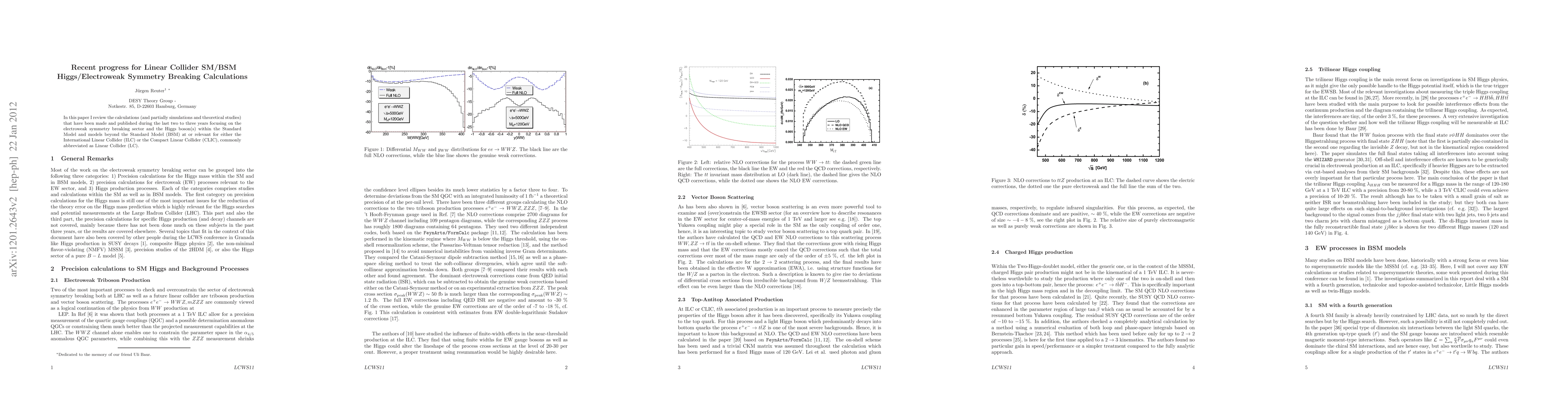 In this paper I review the calculations (and partially simulations and theoretical studies) that have been made and published during the last two to three years focusing on the electroweak symmetry breaking sector and the Higgs boson(s) within the Standard Model and models beyond the Standard Model (BSM) at or relevant for either the International Linear Collider (ILC) or the Compact Linear Collider (CLIC), commonly abbreviated as Linear Collider (LC).