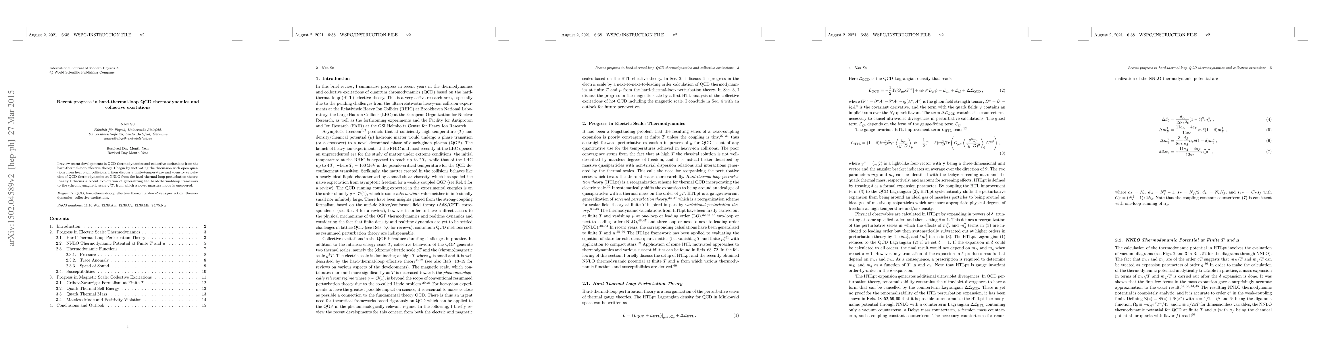 **Summary:** This paper reviews advancements in QCD thermodynamics and collective excitations using hard-thermal-loop effective theory, highlighting recent calculations at NNLO and the discovery of a novel massless mode at the (chromo)magnetic scale.