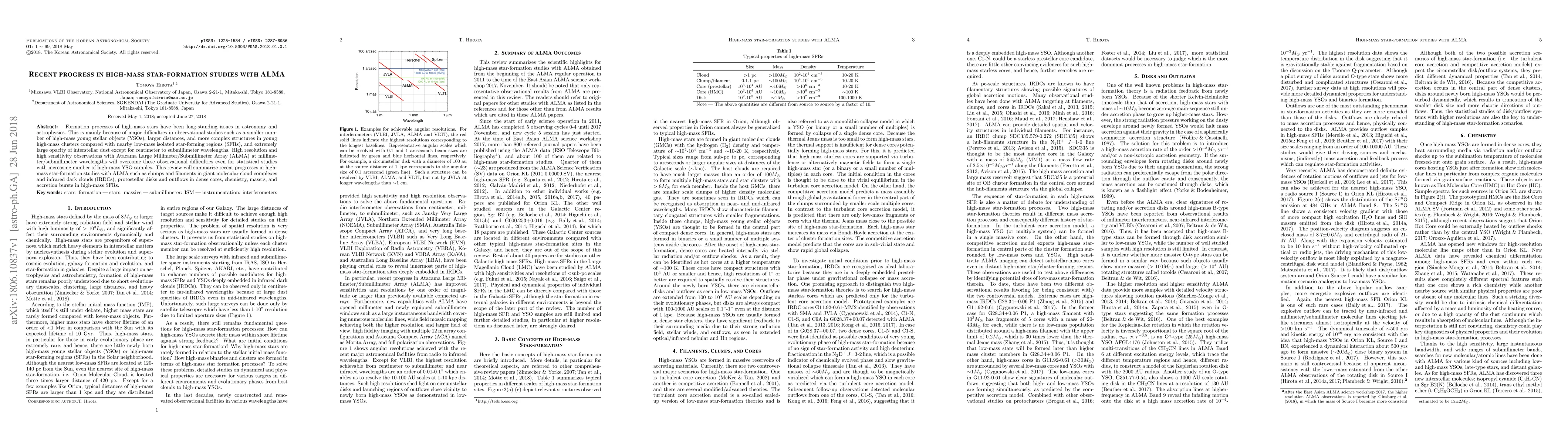 This paper reviews recent advancements in high-mass star-formation studies using ALMA, highlighting significant progress in observing clumps, filaments, protostellar disks, and outflows in complex molecular clouds and infrared dark clouds. ALMA's high resolution and sensitivity have facilitated detailed investigations into the chemistry, masers, and accretion bursts in high-mass star-forming regions.