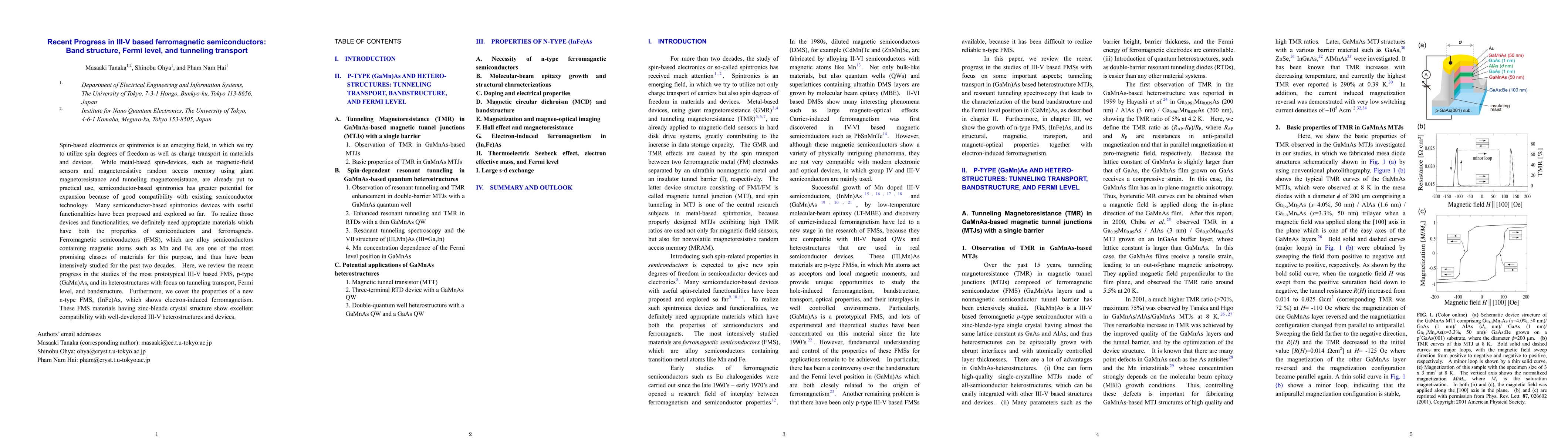 This paper reviews recent advances in III-V based ferromagnetic semiconductors, particularly focusing on the prototypical p-type (GaMn)As and its heterostructures regarding tunneling transport, Fermi level, and band structure. Additionally, it explores the emerging n-type (InFe)As, highlighting its electron-induced ferromagnetism.