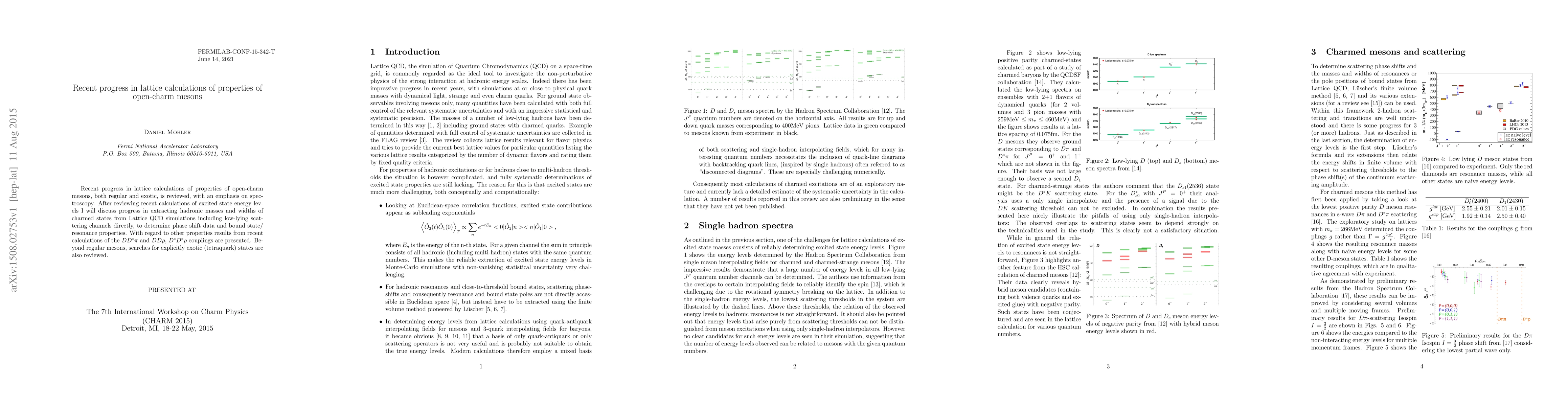 This paper reviews recent advances in lattice QCD calculations for open-charm mesons, focusing on spectroscopy and the extraction of hadronic masses, widths, and scattering channel data. It also discusses the determination of $DD^*\pi$ and $DD\rho$, $D^*D^*\rho$ couplings and explores potential exotic tetraquark states.