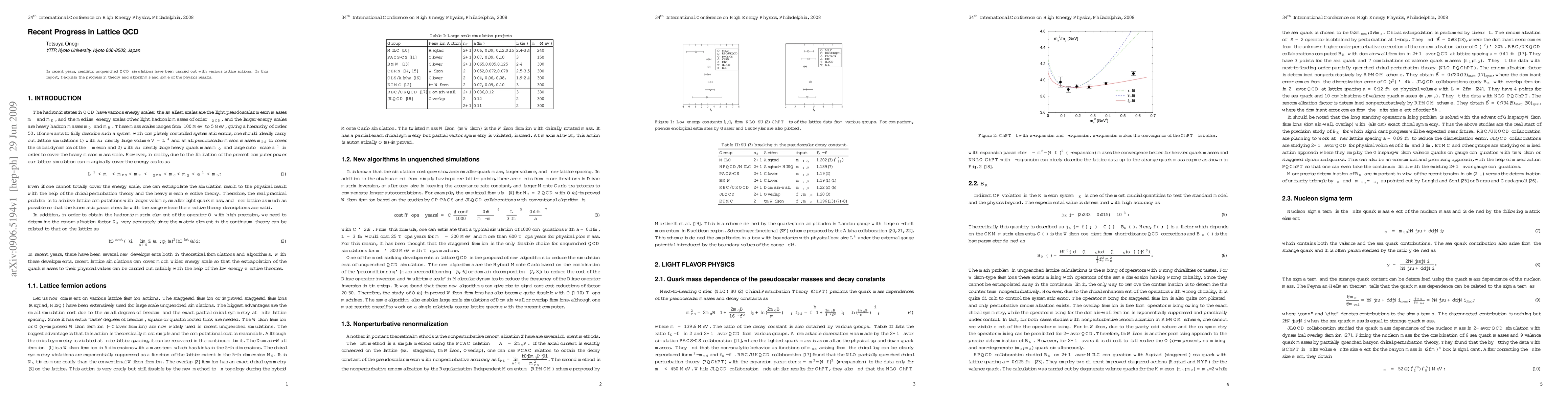The paper discusses recent progress in lattice QCD simulations, including unquenched QCD simulations with various lattice actions. It covers advancements in theory and algorithms, and presents physics results.