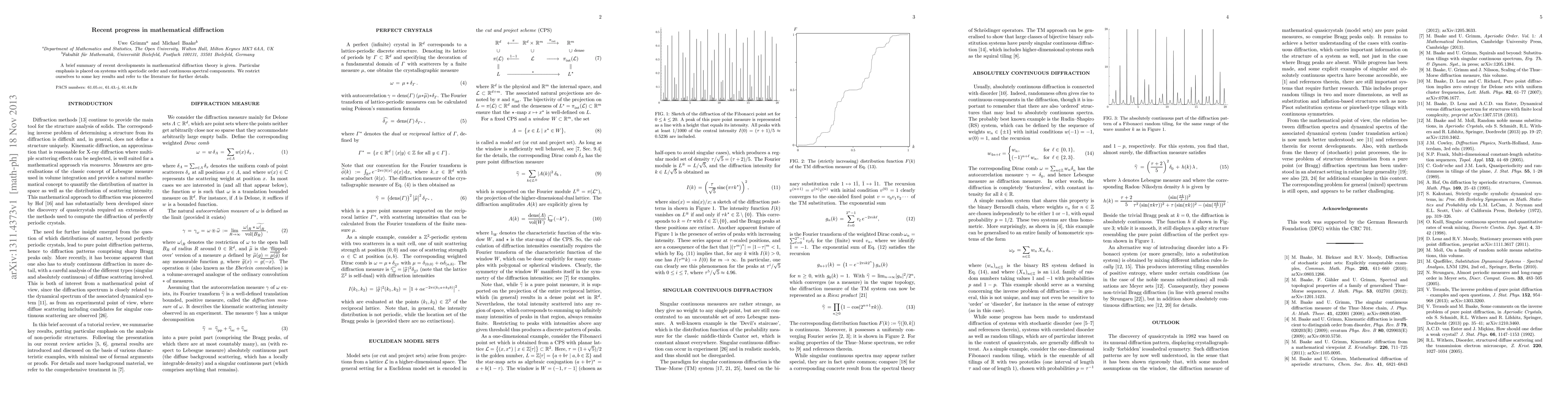 Recent developments in mathematical diffraction theory focus on systems with aperiodic order and continuous spectral components, highlighting key results in this evolving field. For comprehensive details, readers are directed to additional literature.