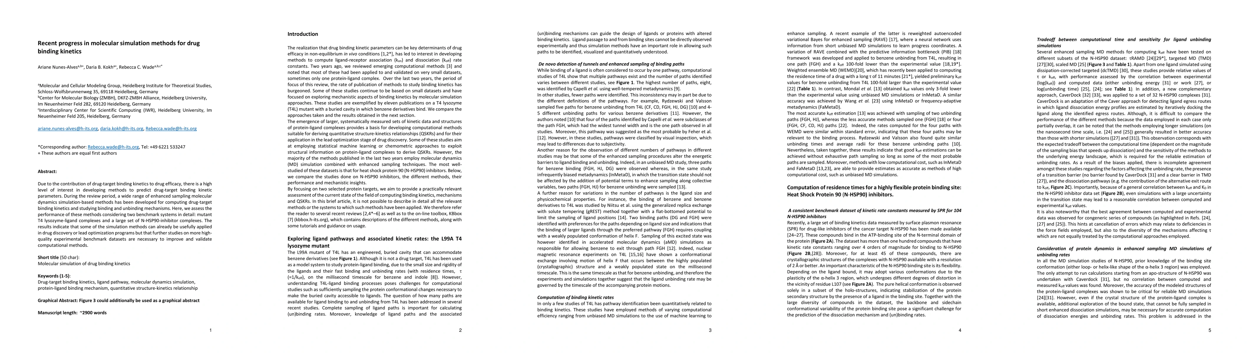 This paper reviews recent advancements in molecular simulation methods for predicting drug-target binding kinetics, assessing their performance using benchmark systems. While some methods show promise for drug discovery, further validation against high-quality experimental data is needed to enhance their accuracy and reliability.
