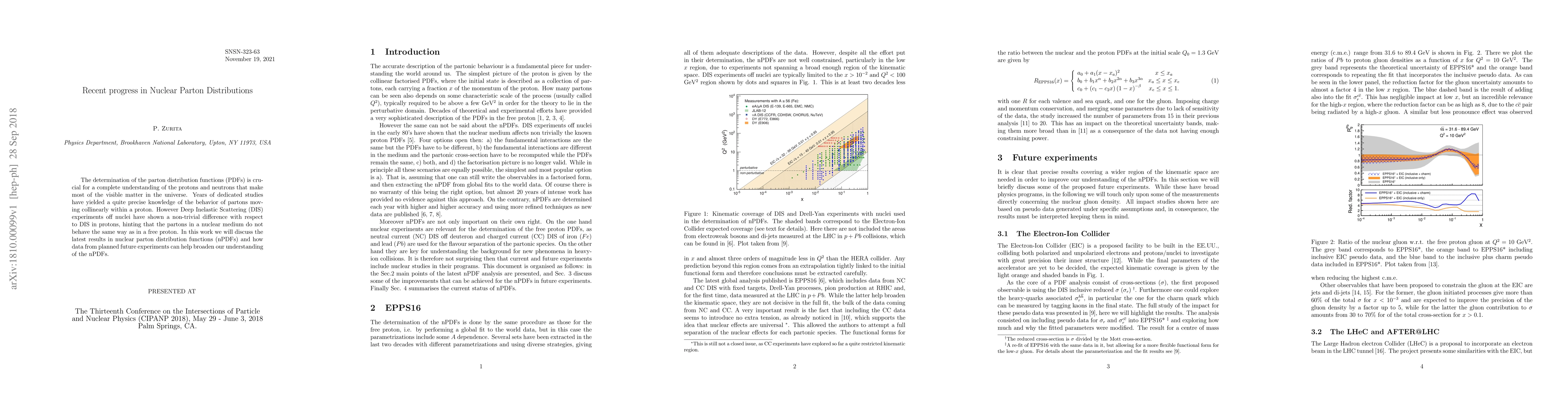 This paper reviews recent advancements in nuclear parton distribution functions (nPDFs), emphasizing the differences observed in Deep Inelastic Scattering experiments between nuclear and proton mediums. It highlights how future experimental data will further our understanding of nPDFs.