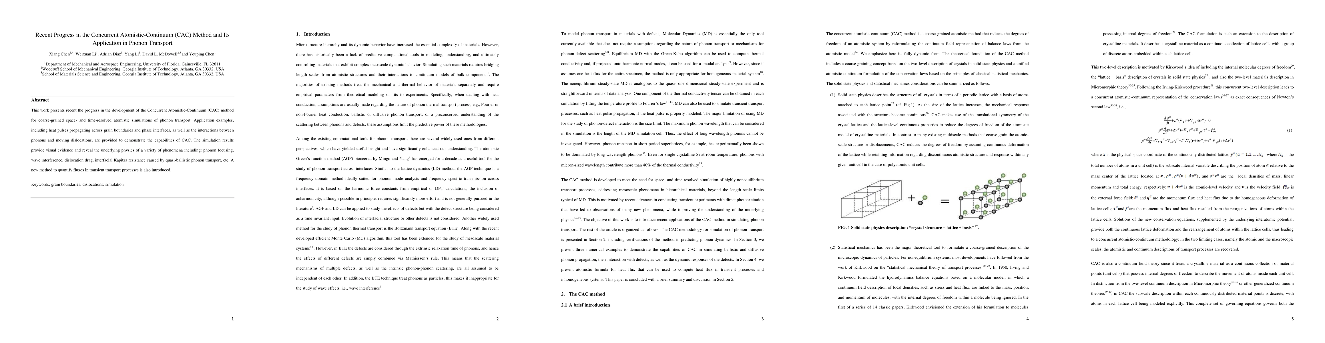 This paper details advancements in the Concurrent Atomistic-Continuum (CAC) method for detailed phonon transport simulations, showcasing its application in analyzing phenomena like phonon focusing and wave interference across grain boundaries and phase interfaces. A novel method for quantifying fluxes in transient transport processes is also introduced.