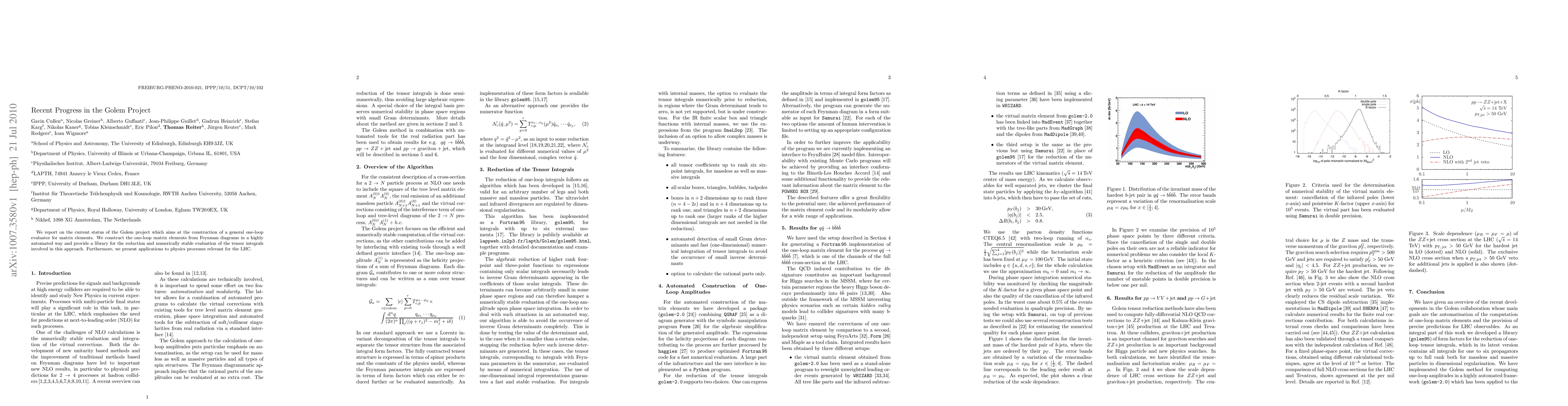 We report on the current status of the Golem project which aims at the construction of a general one-loop evaluator for matrix elements. We construct the one-loop matrix elements from Feynman diagrams in a highly automated way and provide a library for the reduction and numerically stable evaluation of the tensor integrals involved in this approach. Furthermore, we present applications to physics processes relevant for the LHC.