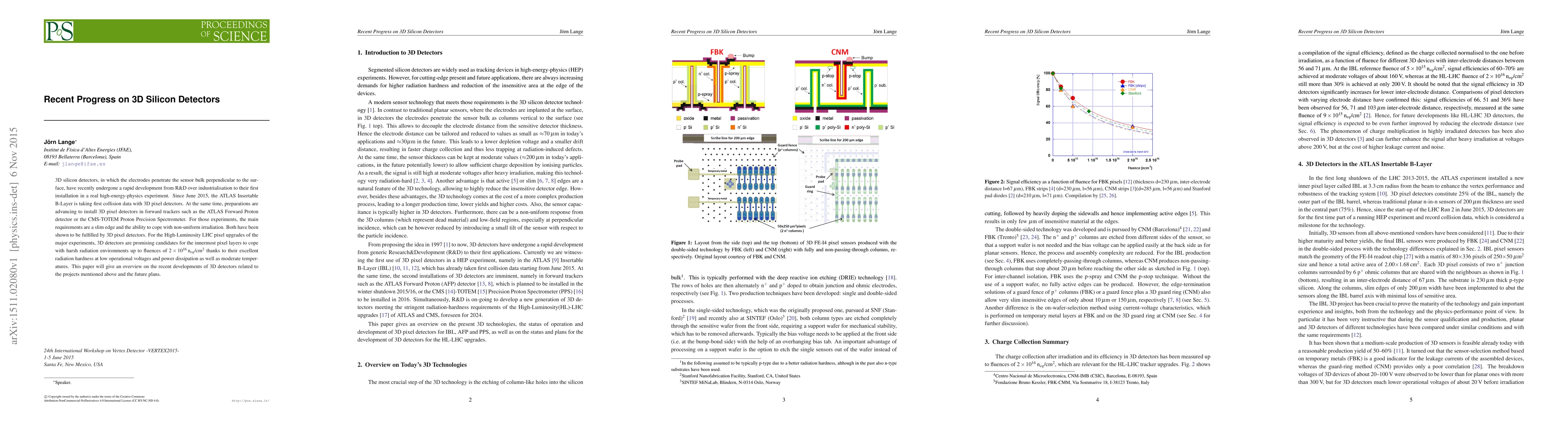 This paper reviews the rapid advancements in 3D silicon detectors, highlighting their successful implementation in the ATLAS Insertable B-Layer and their potential for future upgrades in high-energy physics experiments, particularly in handling high radiation levels.