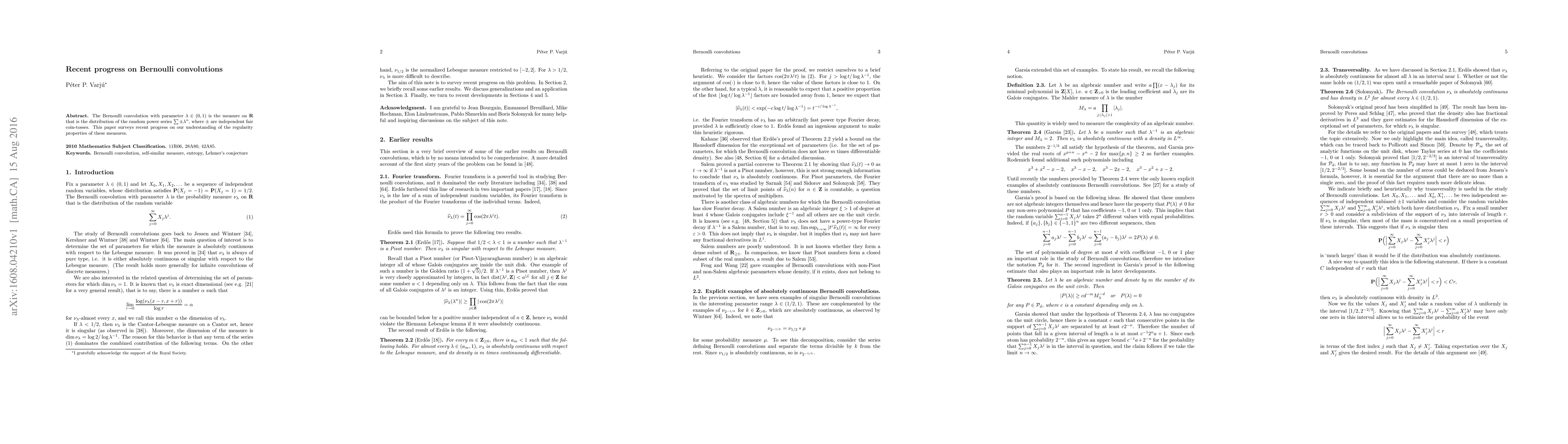 The Bernoulli convolution with parameter $\lambda\in(0,1)$ is the measure on $\bf R$ that is the distribution of the random power series $\sum\pm\lambda^n$, where $\pm$ are independent fair coin-tosses. This paper surveys recent progress on our understanding of the regularity properties of these measures.