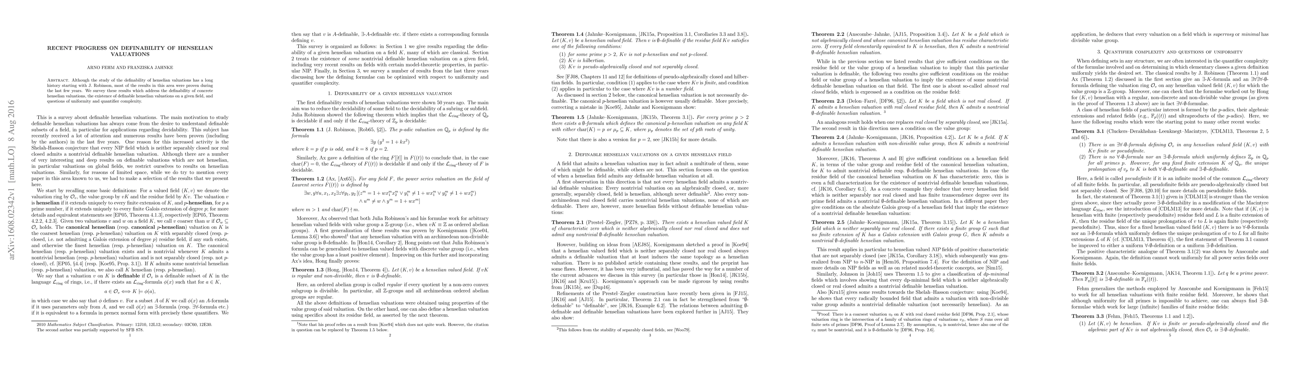 This paper surveys recent advancements in the definability of henselian valuations, highlighting results on specific valuations, the existence within given fields, and issues related to uniformity and quantifier complexity. The study builds on foundational work by J. Robinson.
