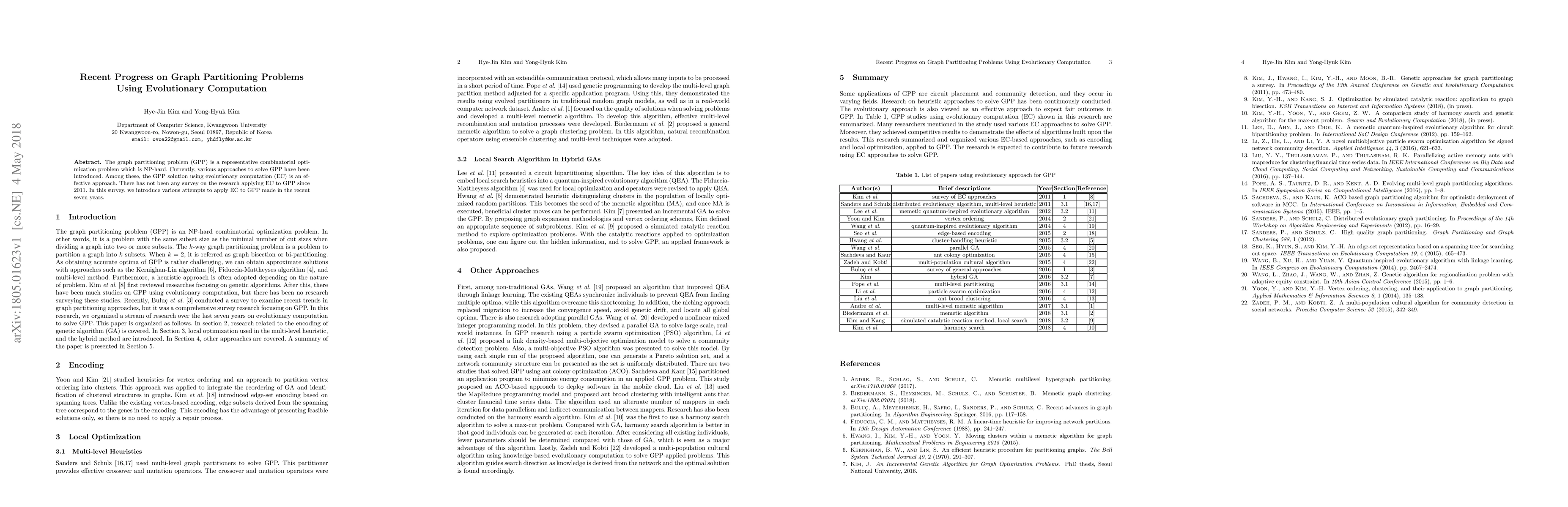 The study reviews effective methods for applying evolutionary computation to the NP-hard graph partitioning problem, providing insights into its recent applications.