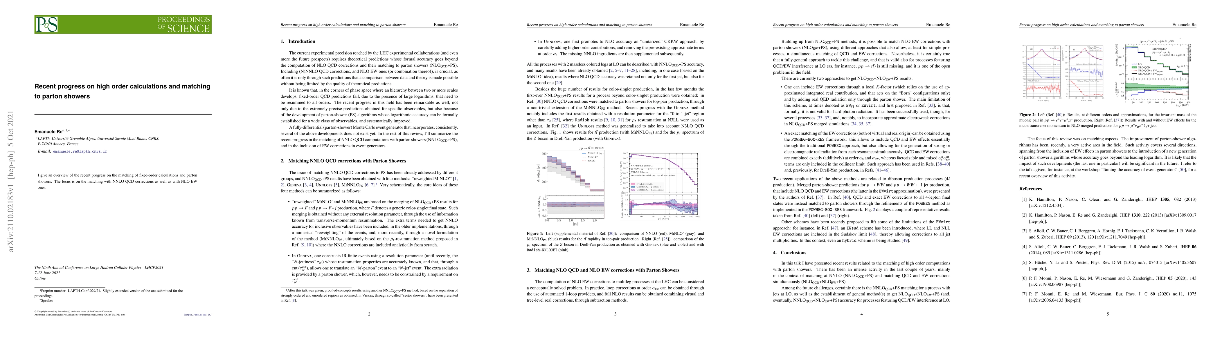 Summary: This paper reviews advancements in matching fixed-order calculations to parton showers, emphasizing improvements in NNLO QCD and NLO EW corrections for high-order computations.
