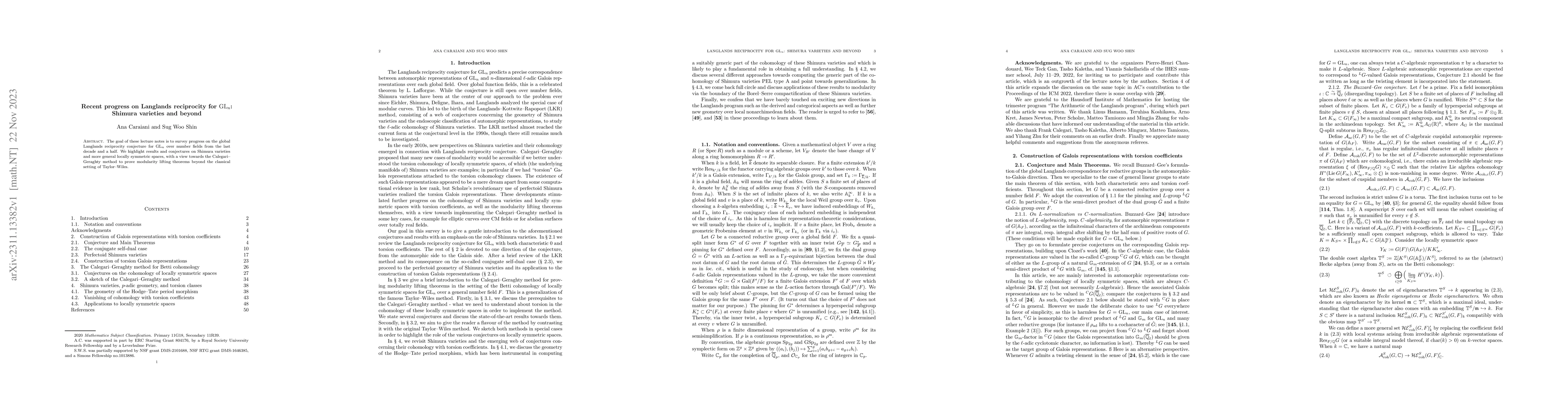 Summary: These lecture notes survey recent advancements in the global Langlands reciprocity conjecture for $\mathrm{GL}_n$, emphasizing results related to Shimura varieties and locally symmetric spaces, and exploring the Calegari-Geraghty method for proving modularity lifting theorems.